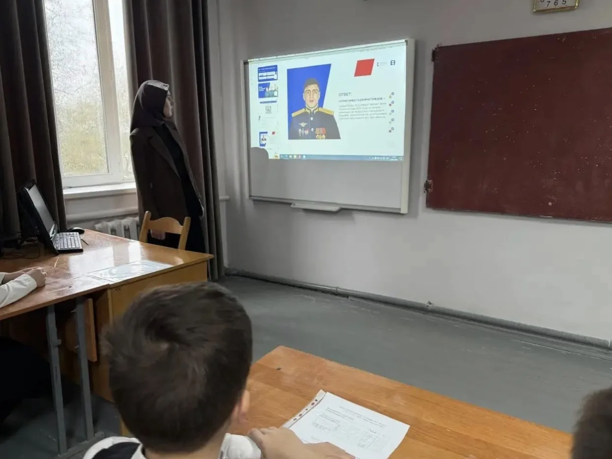 18 февраля, в МБОУ «Шелкозаводская СОШ» учитель истории Косумова М.Т. провела тематический урок‑презентацию «Страшно вспомнить, забыть нельзя», приуроченный ко Дню защитника Отечества. Мероприятие было нацелено на воспитание патриотизма, уважения к воинской славе России и памяти о подвигах защитников Родины.