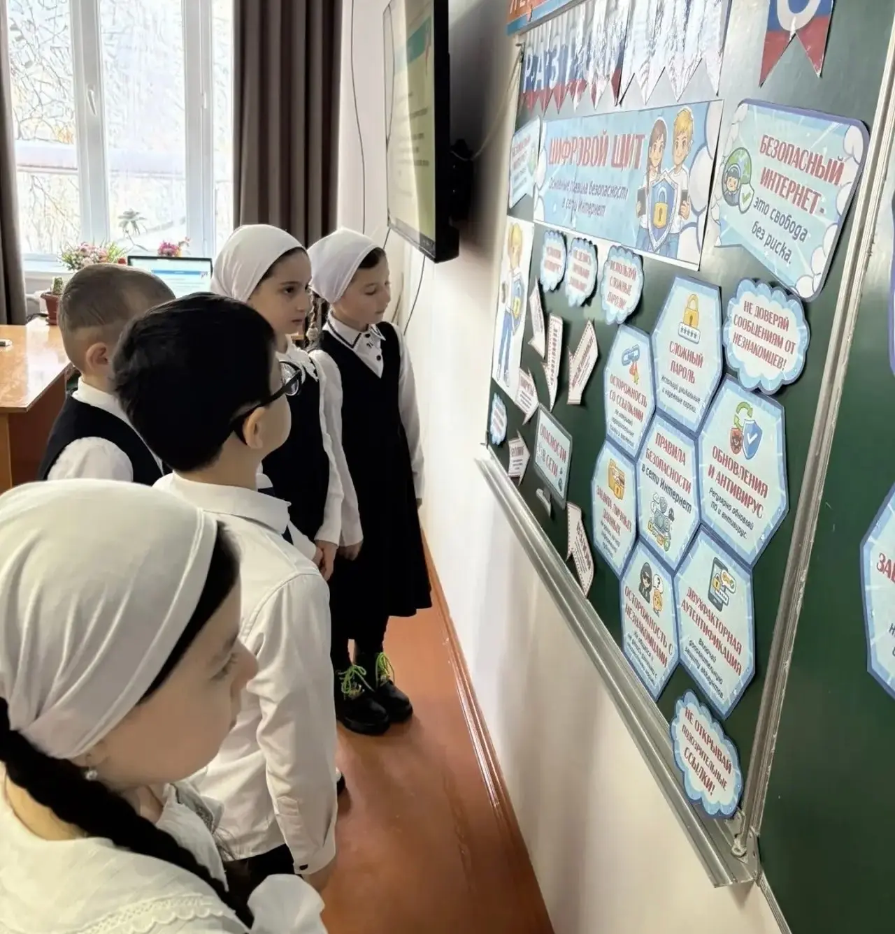 После линейки ребята вместе с классными руководителями отправились на внеурочные занятия «Разговоры о важном» по теме «Цифровой щит. Основные правила безопасности в сети Интернет».