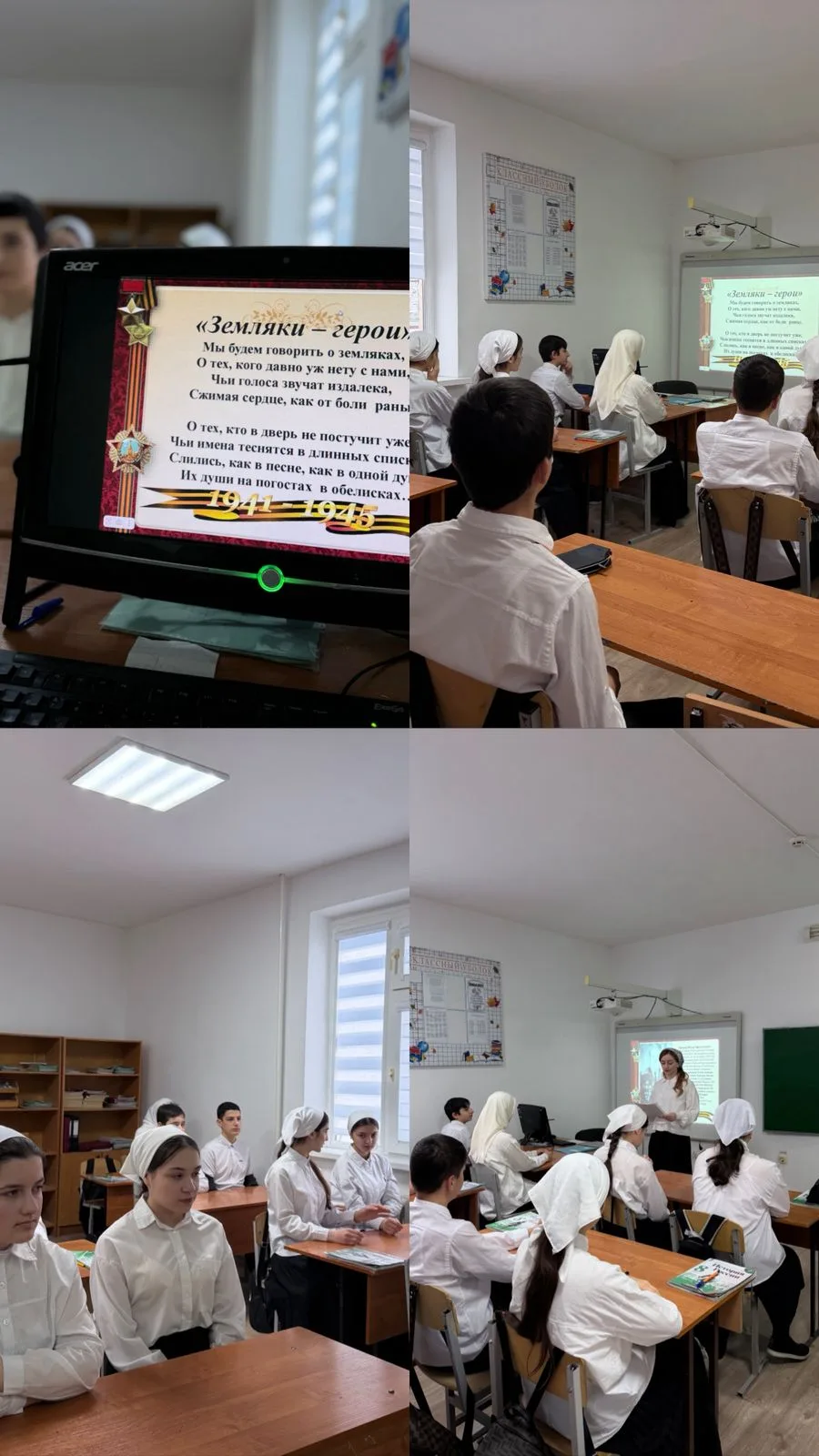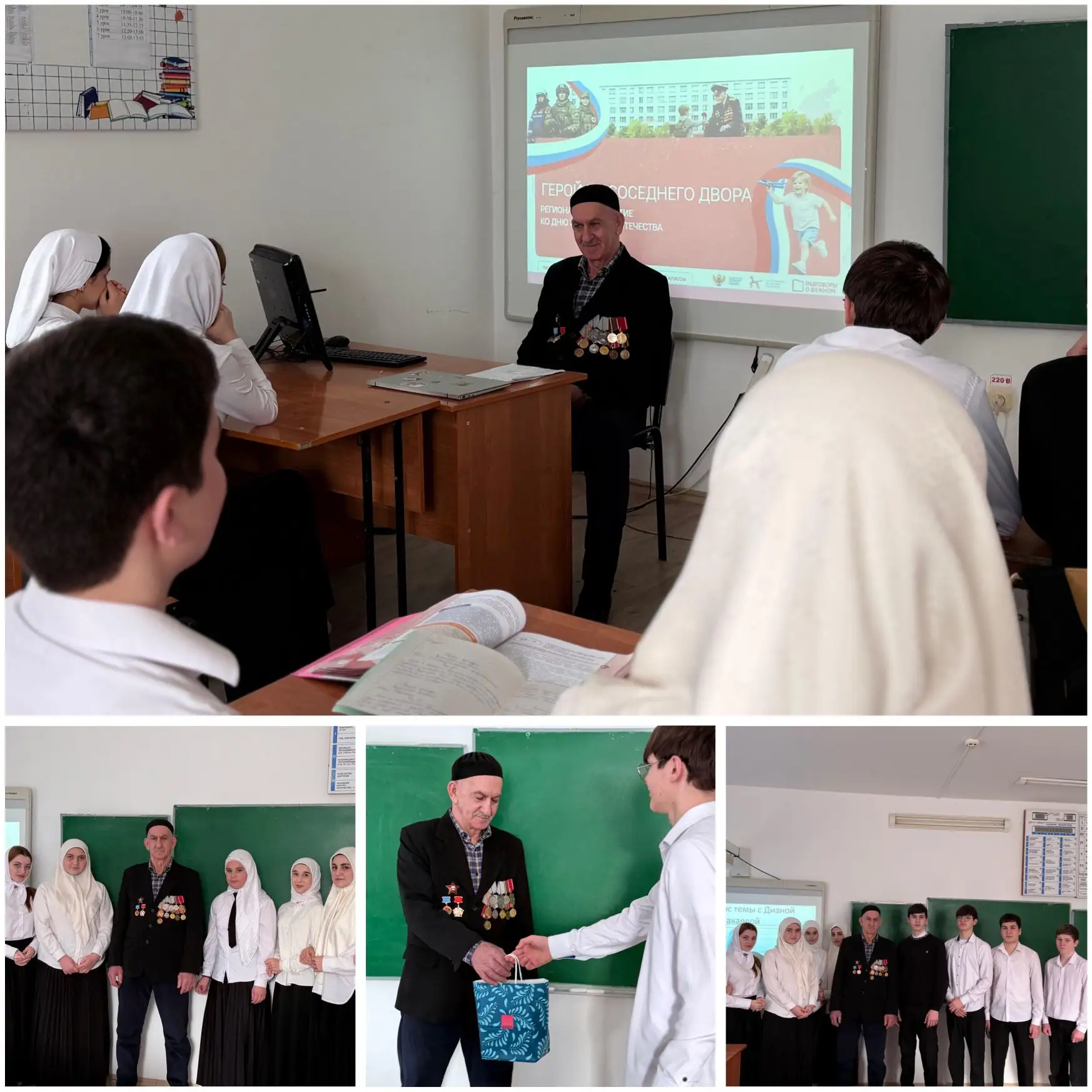 В МБОУ "Лесхозовская ООШ" учитель истории Амурзахова Марха Хусейновна провела увлекательную лекцию на тему: 《Земляки-герои》. На мероприятии ребята смогли узнать о героических подвигах земляков,участвовавших в специальной военной операции (СВО) и в Великой Отечественной войне (ВОВ). Особое внимание было уделено героям, чьи судьбы тесно связаны с нашим краем и станицей.