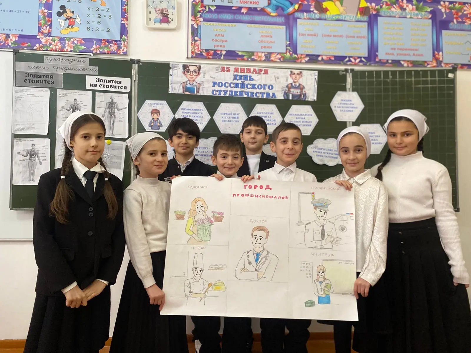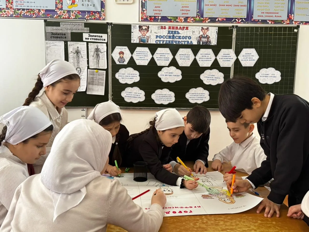 В ходе акции учащиеся создали проект на ватмане под названием «Город профессионалов». Каждый участник выбрал профессию, которая его интересует, и представил её в творческой форме — через рисунки, графику, текстовую информацию и иллюстрации. Проект стал отличной возможностью для развития креативных навыков, командной работы и исследовательской деятельности среди учеников.