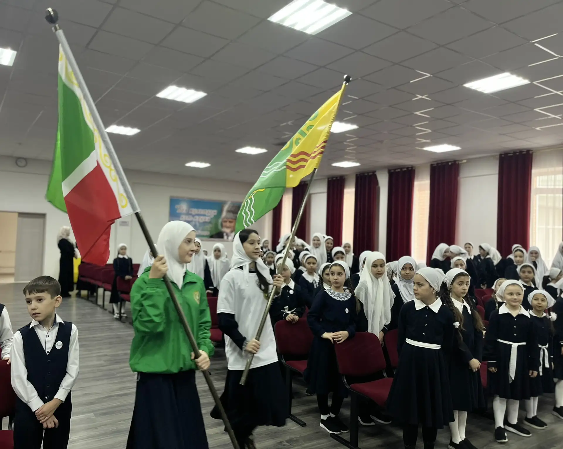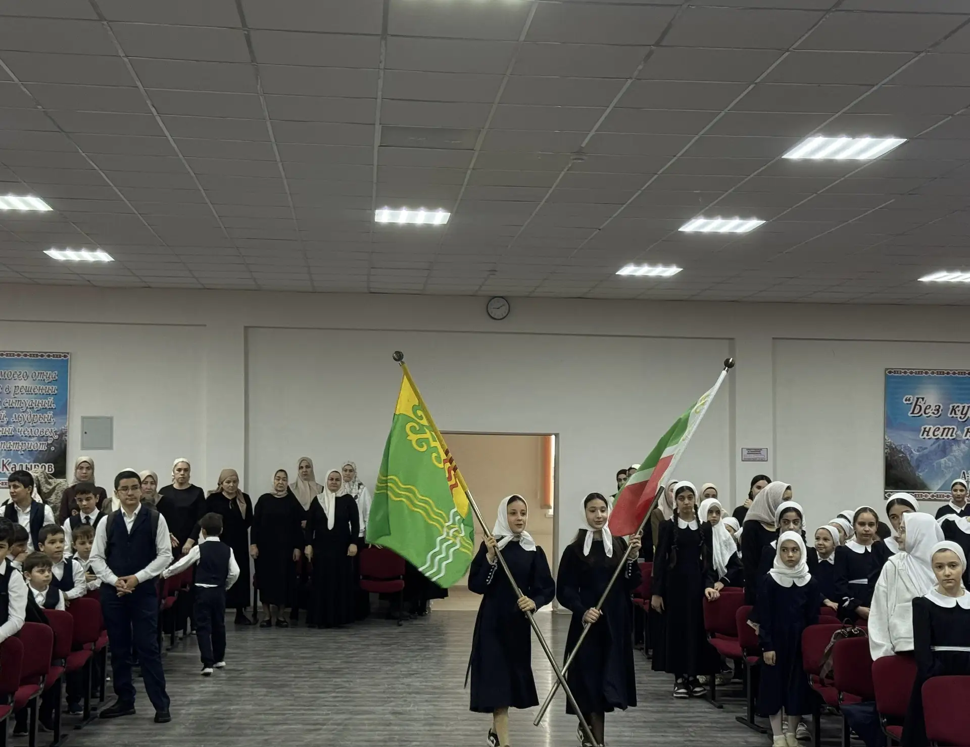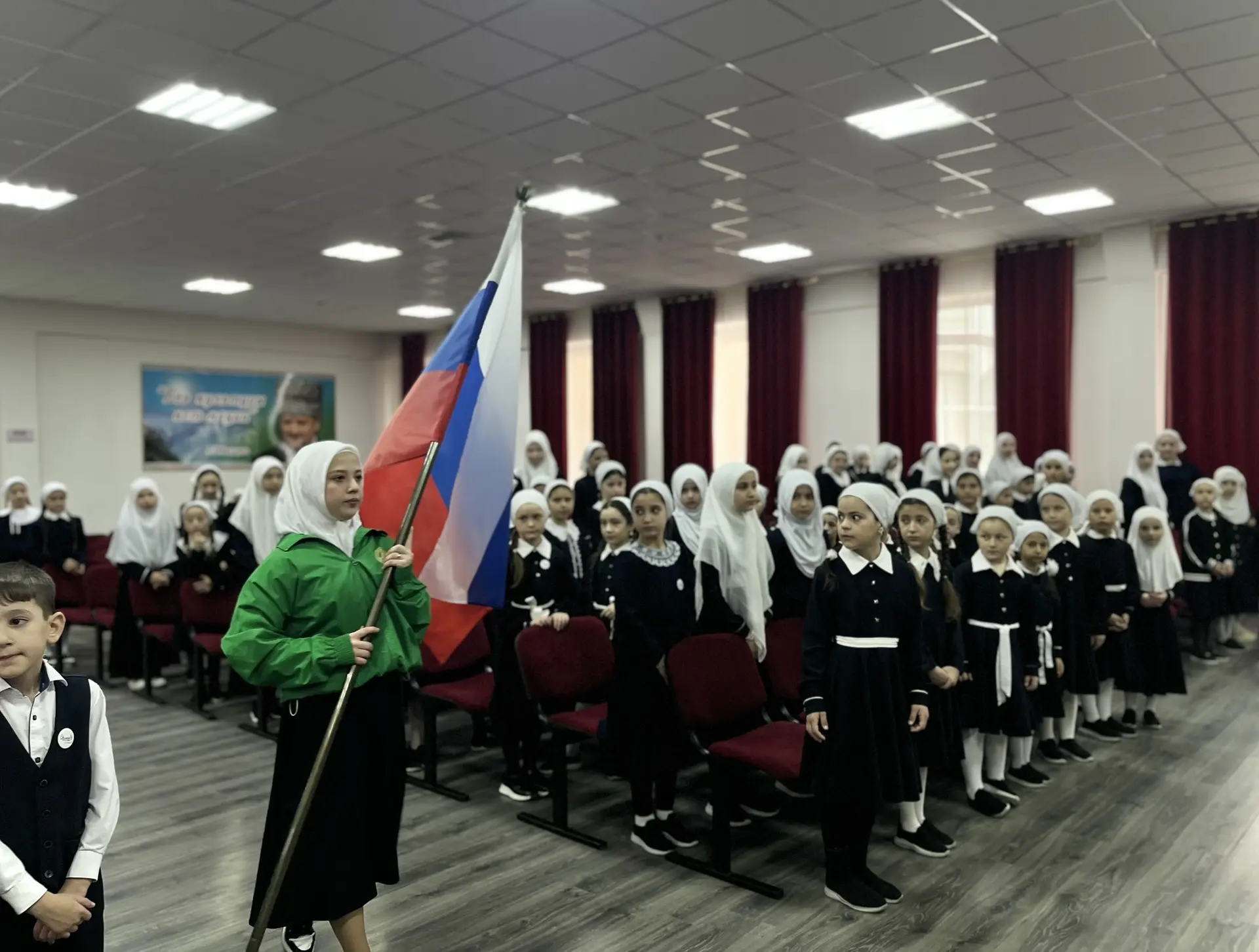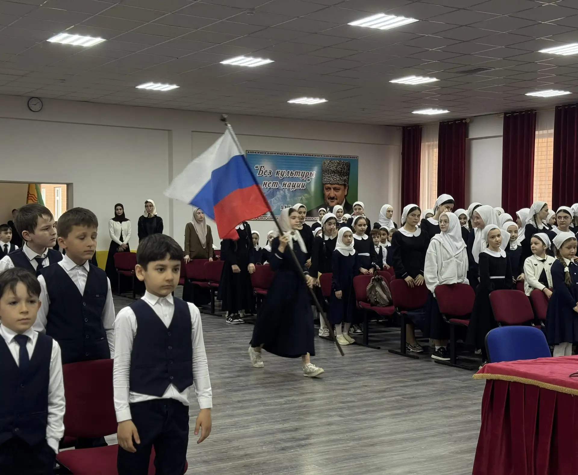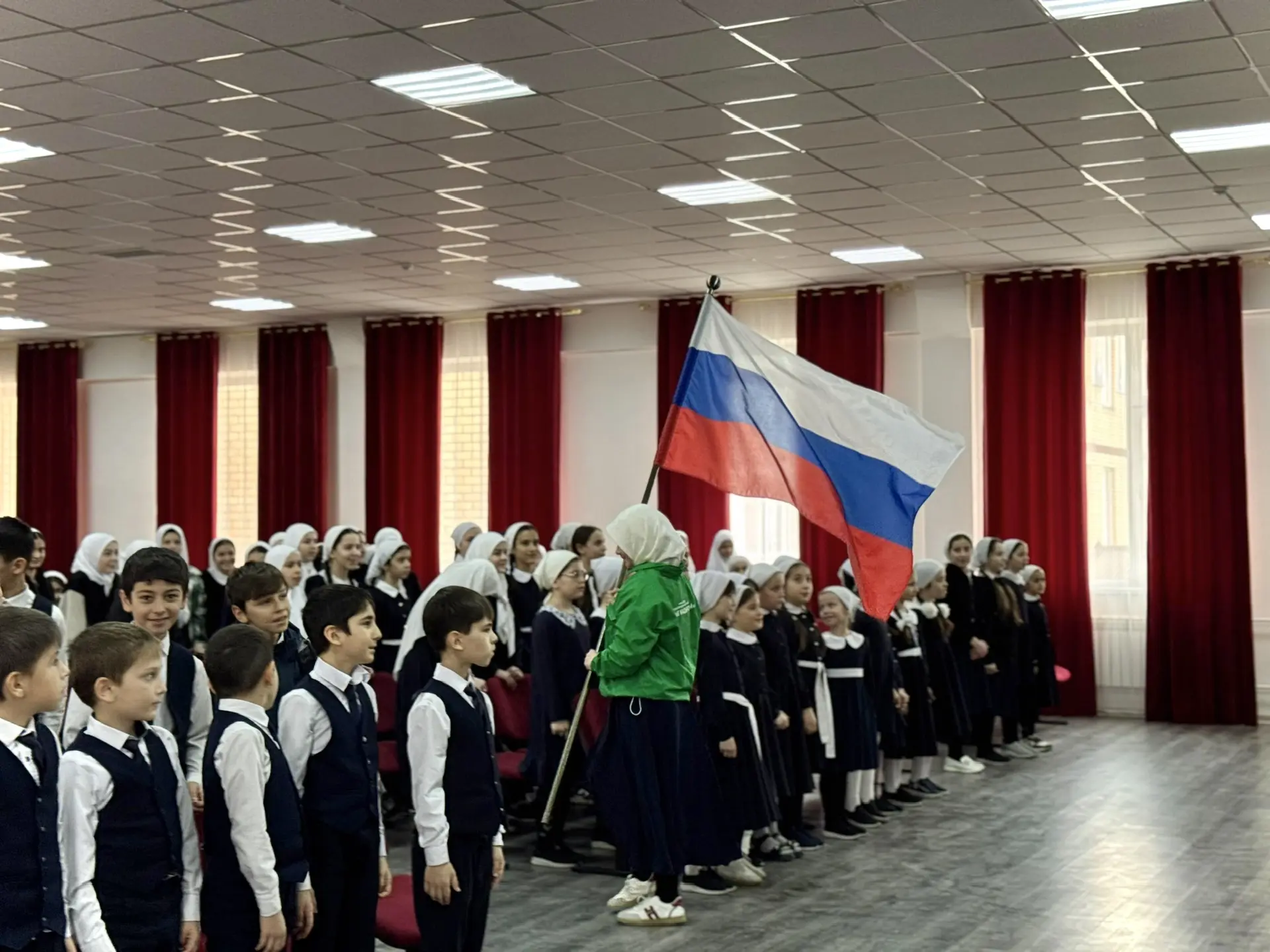 В школе прошла традиционная линейка: с гордостью исполнили гимны России и Чеченской Республики, торжественно внесли флаги нашей великой страны и родного края. 🇷🇺