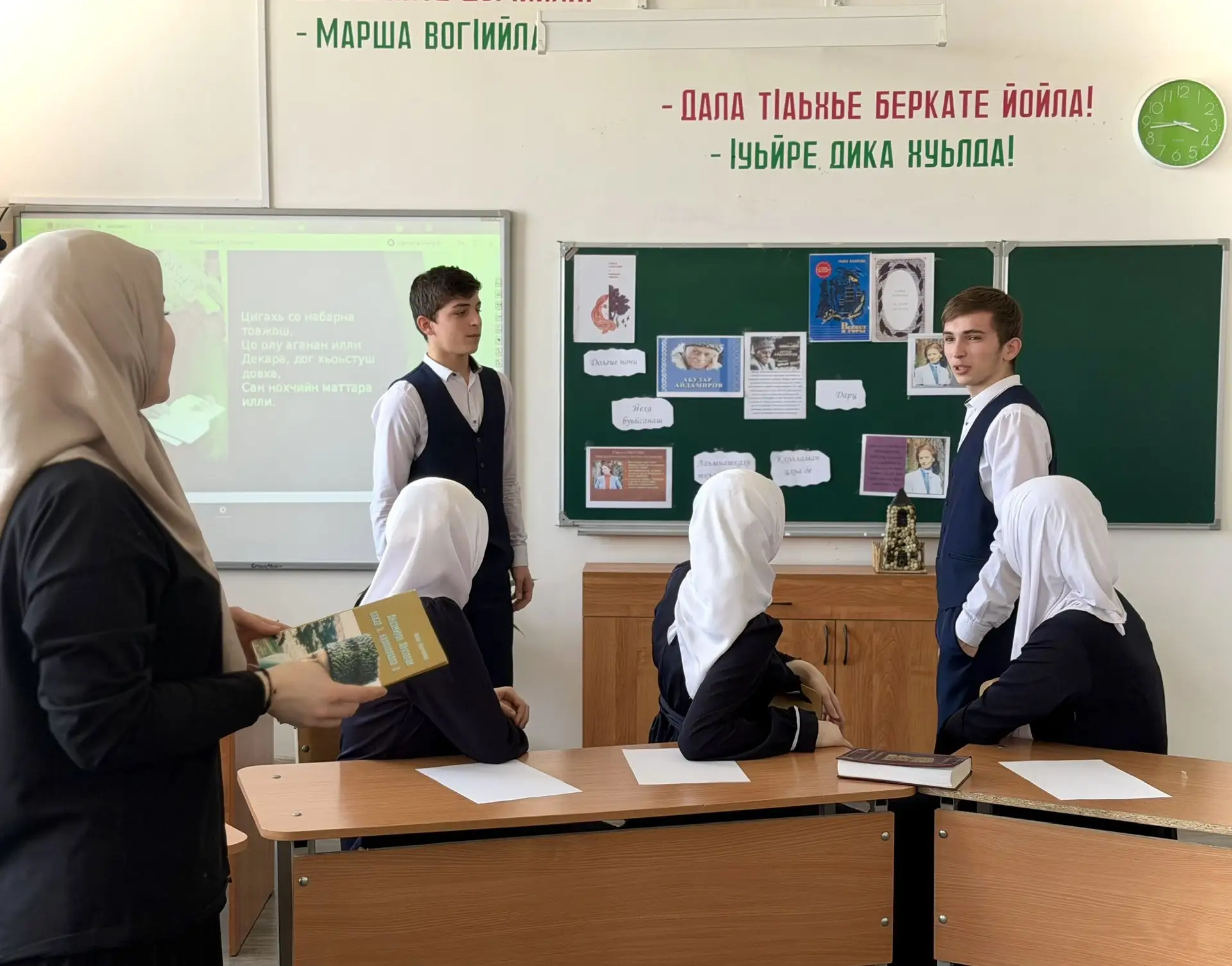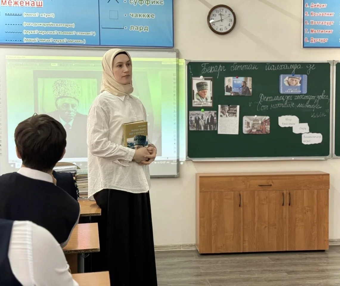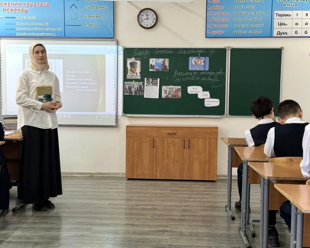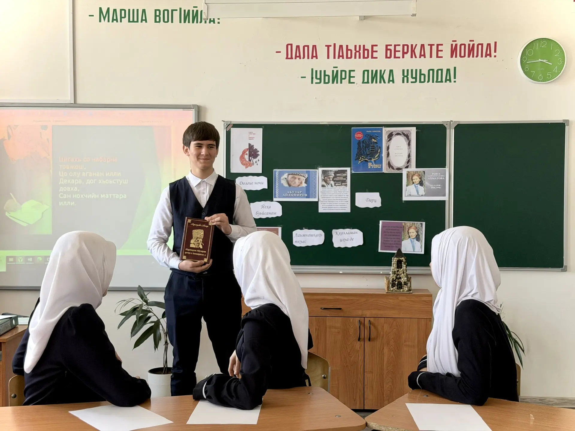 Учитель чеченской литературы и родного языка Хангереева Жанета В. погрузила учеников в удивительный мир творчества выдающегося поэта и прозаика Абузара Айдамирова.