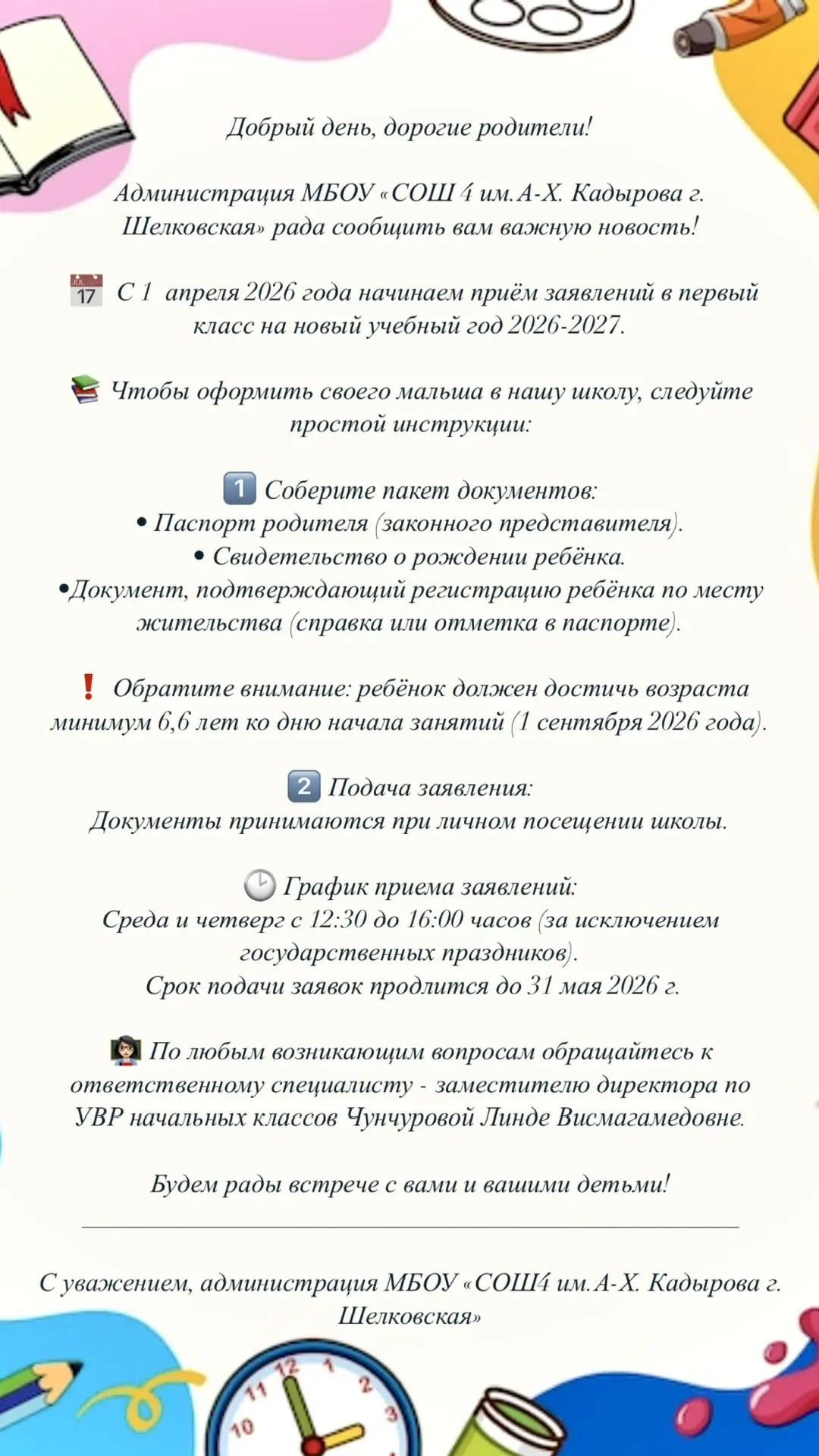 С 1 марта наша школа открывает приём заявлений на обучение в первом классе 🏫