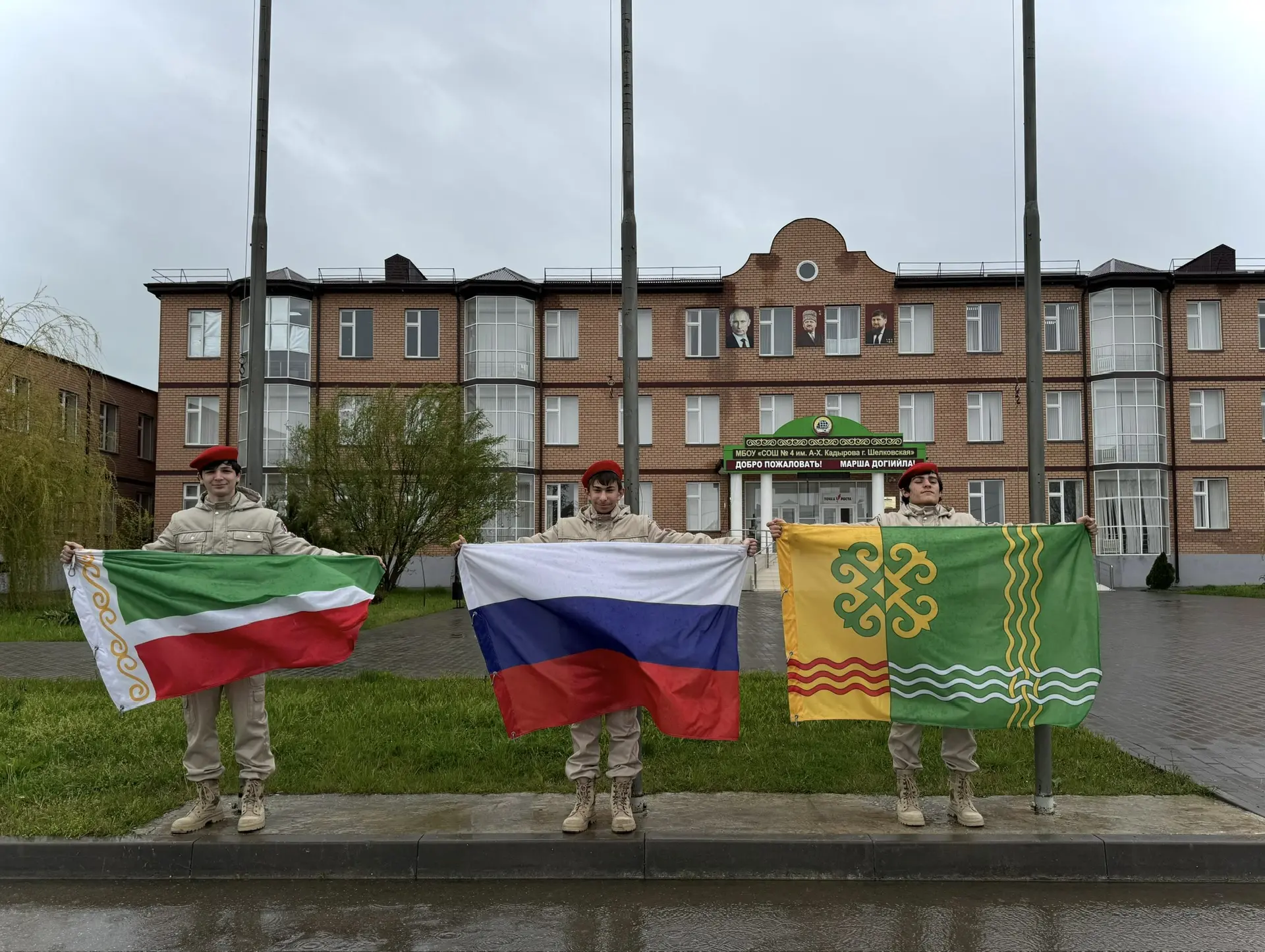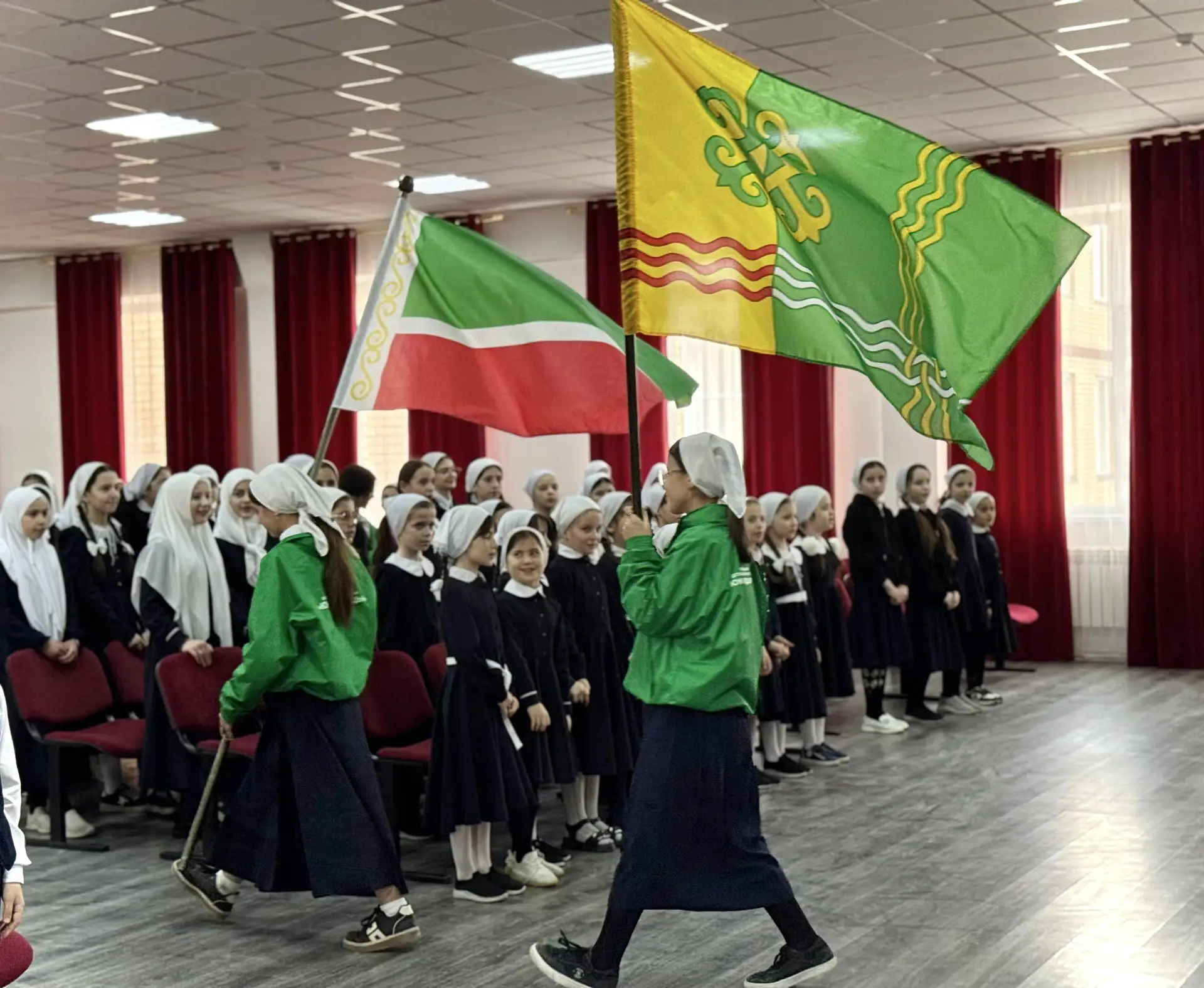 Торжественный вынос государственных флагов Российской Федерации и Чеченской Республики стал символом единства и красоты, открывающим дорогу новым победам и радостям.