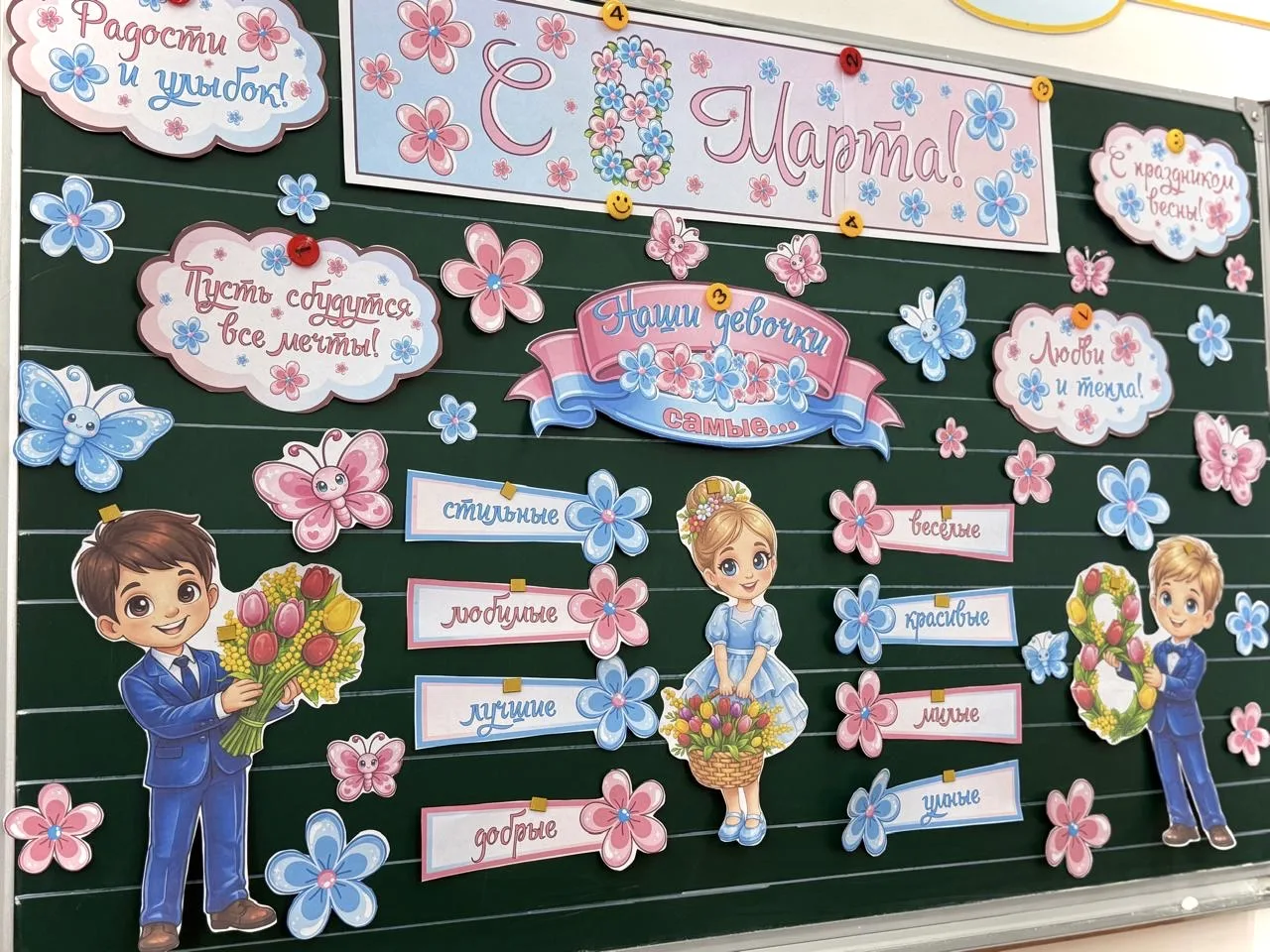 У нас в школе развернулась настоящая выставка волшебных красок и улыбок — прошёл яркий конкурс рисунков, посвящённый Международному Женскому Дню! 🎨