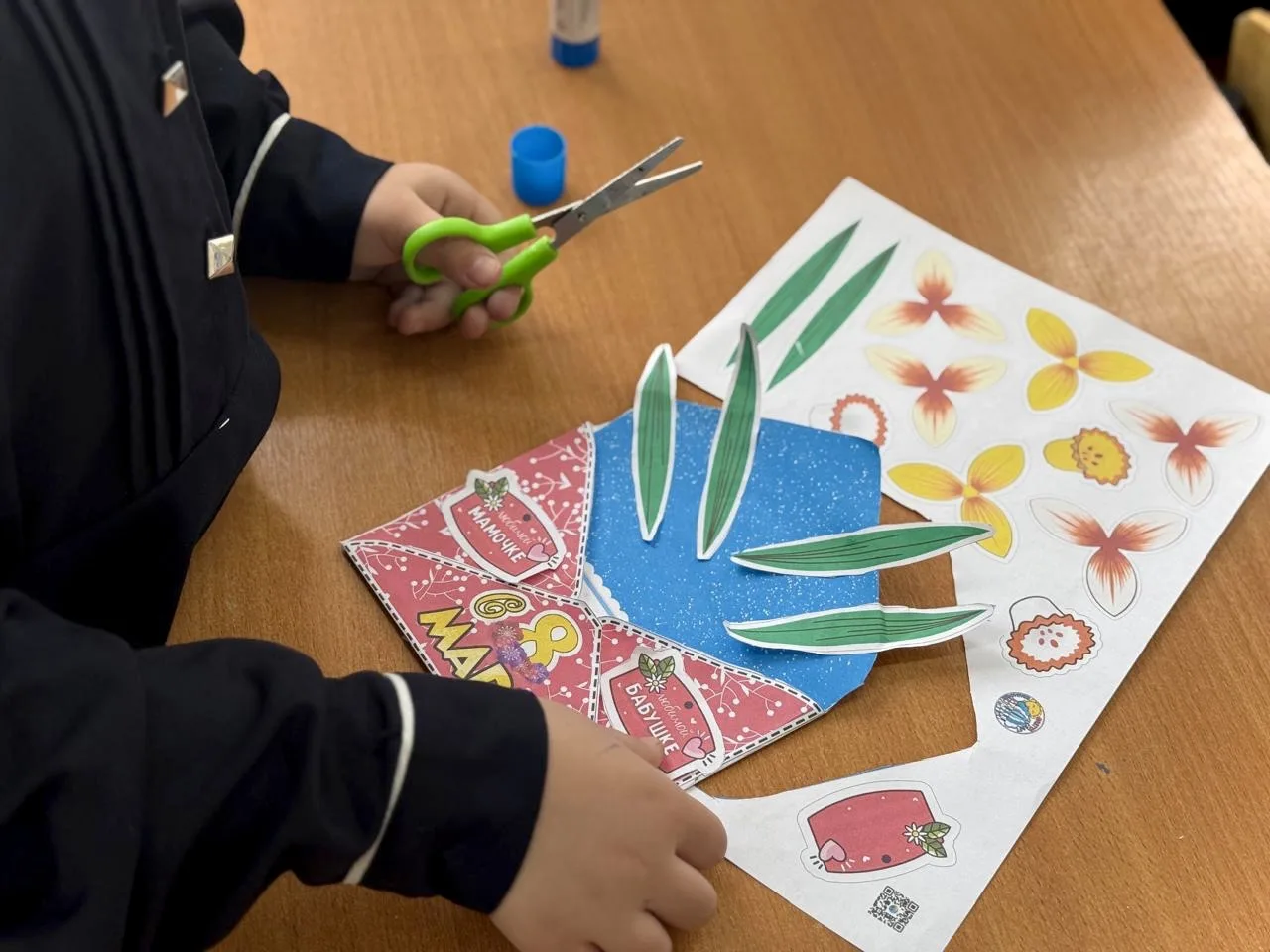 Кульминацией занятия стало создание ярких аппликаций, которые дети подарят своим мамам. 🤍