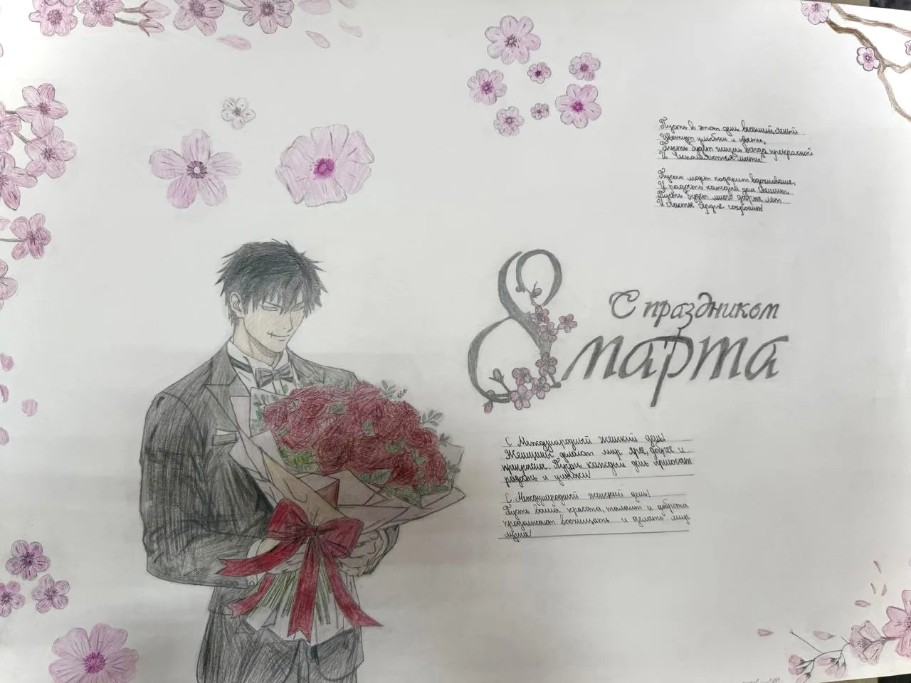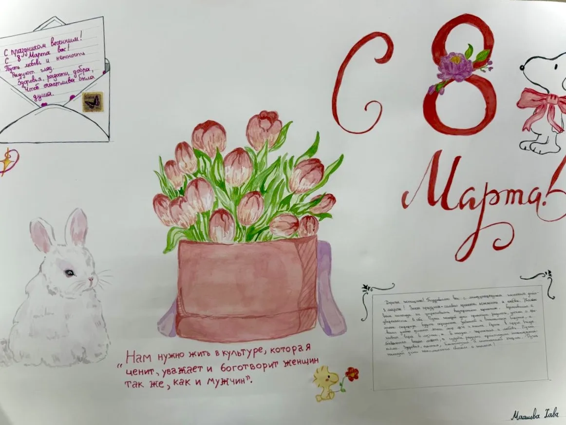 Старшие классы нашей школы превратились в настоящих художников, создав невероятные стенгазеты к Международному Женскому Дню!