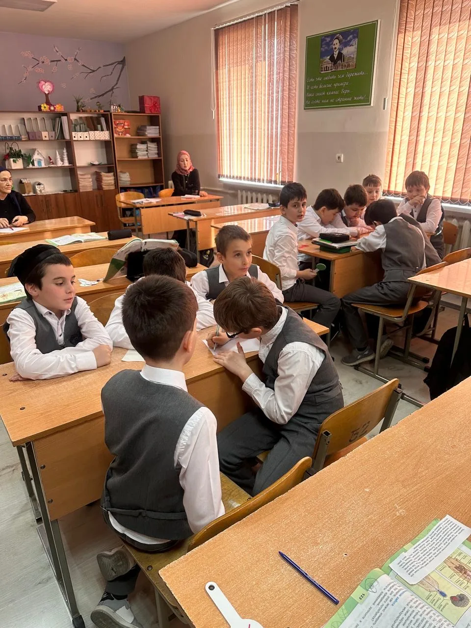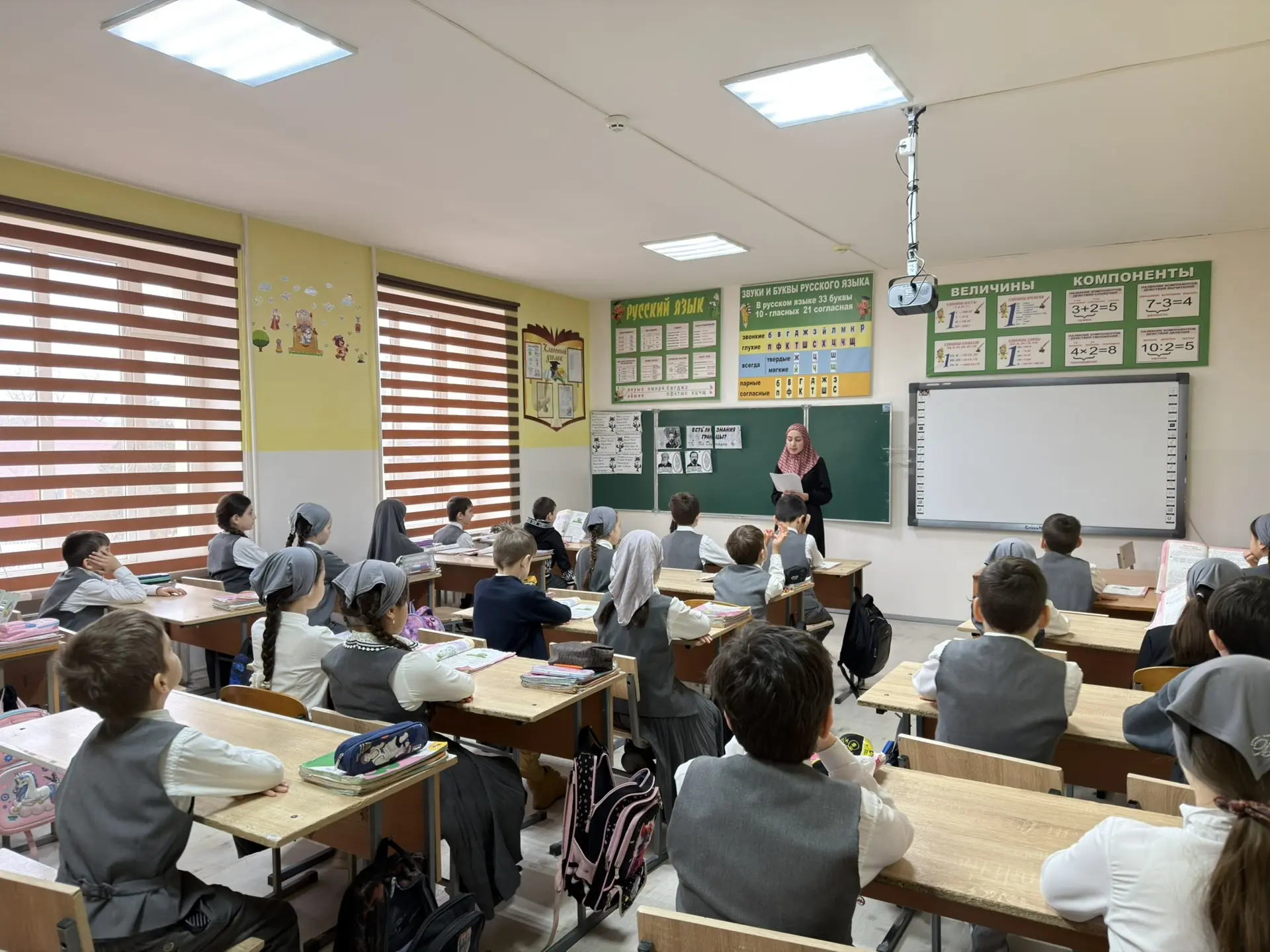 Целью визита была оценка эффективности педагогических методик и атмосферы на занятиях. Особенно отмечен был урок обучения письму в 1"В" классе, который провела учитель начальных классов Мялхазни Вахажиевна Мацаева.