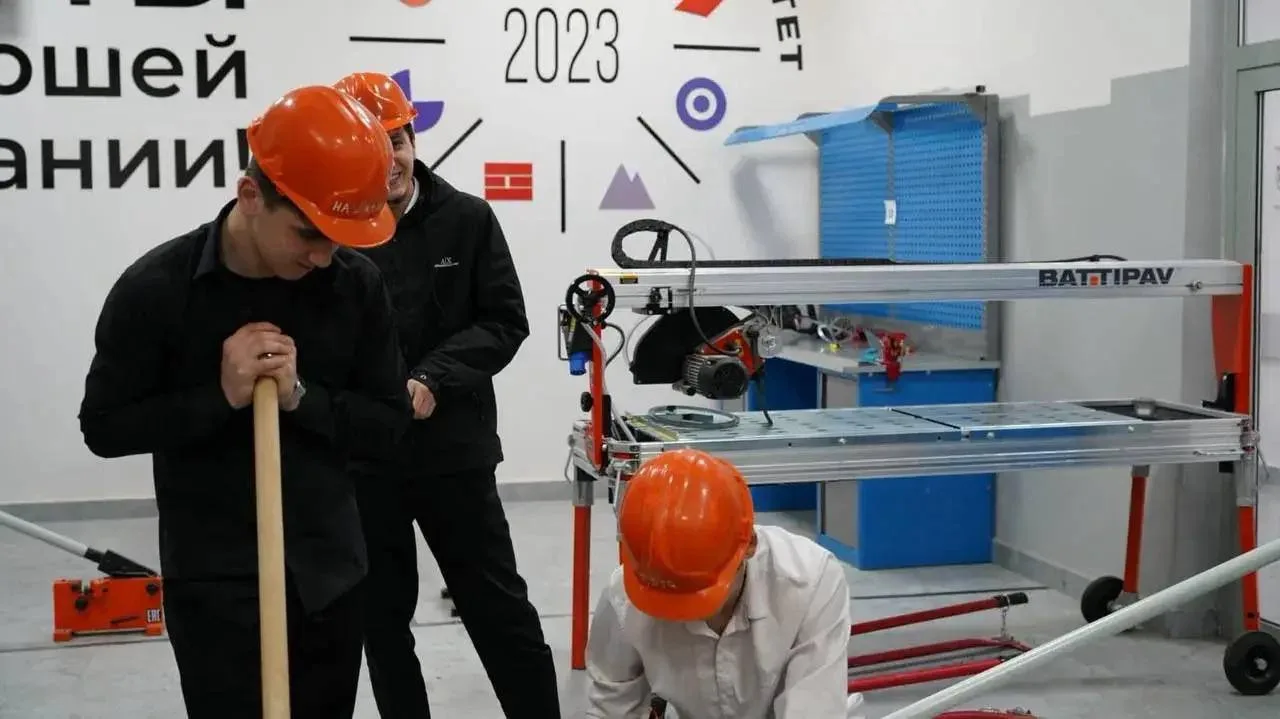 В мастерских строительного кластера ФП «Профессионалитет» ГГНТУ прошёл практический мастер-класс по кирпичной кладке для школьников. Ребята узнали основы технологии и под руководством преподавателей выполнили свои первые пробные элементы кладки.