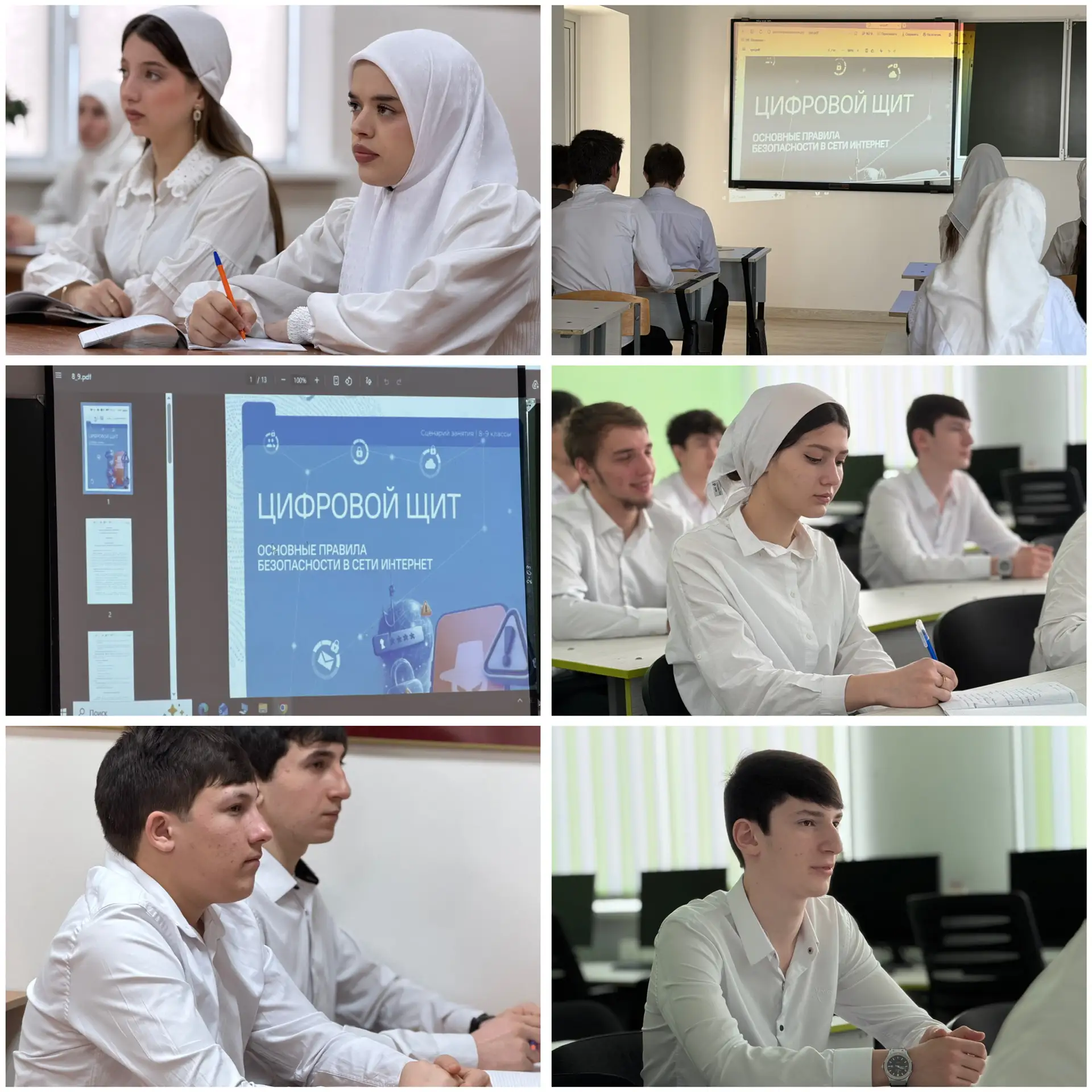 Традиционно, после церемонии поднятия флагов и звучания гимнов Российской Федерации и Чеченской республики, кураторы со студентами разошлись по кабинетам для проведения мероприятий из цикла «Разговоры о важном». Тема сегодняшних разговоров о важном - «Цифровой щит. Основные правила безопасности в сети Интернет»