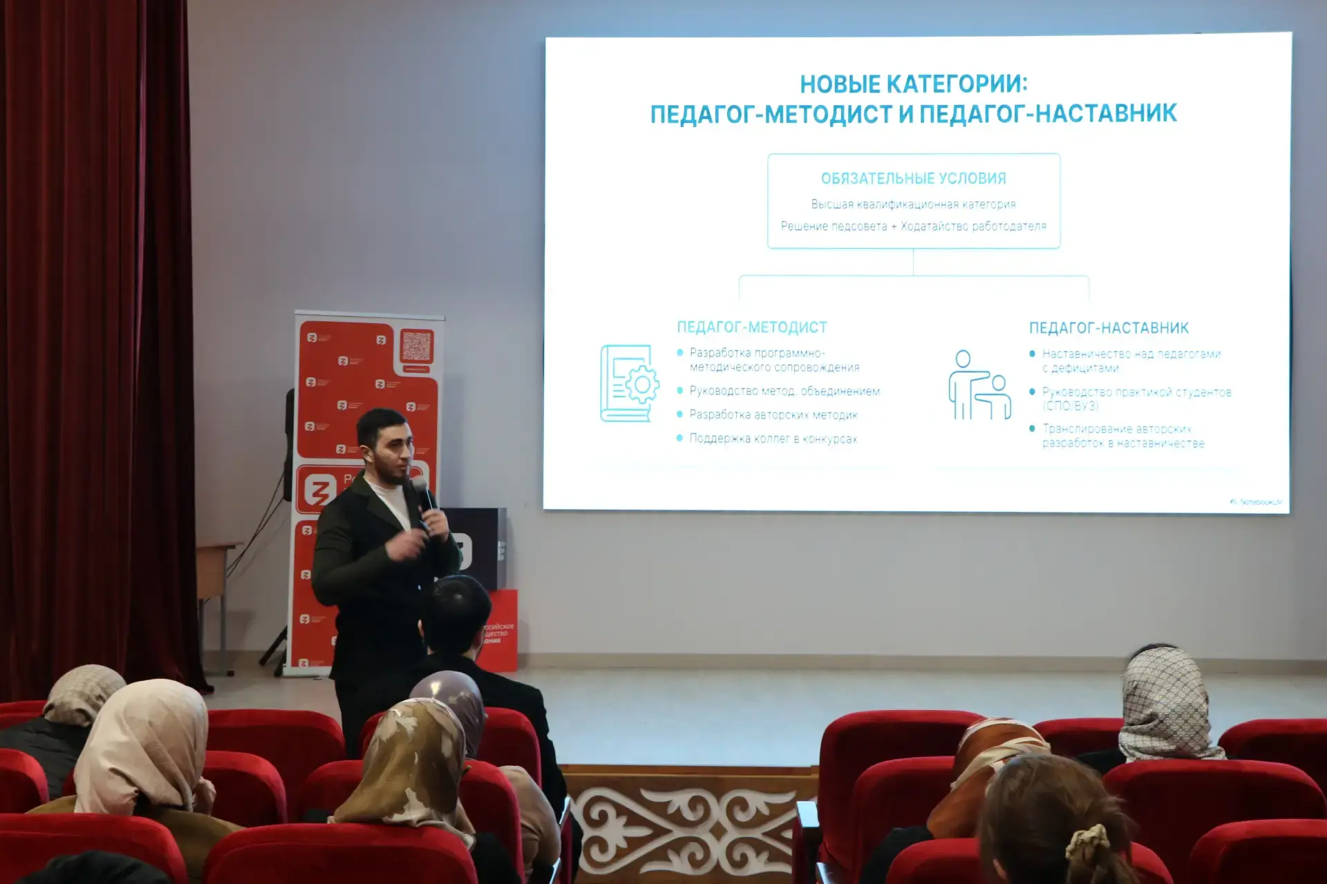Мероприятие было подготовлено в целях празднование 2 марта Дня наставника, утвержденного в соответствии с Указом Президента Российской Федерации от 1 апреля 2025 г. № 197. Были приглашены кураторы наставничества в муниципальных районах и лучшие кураторы образовательных организаций. Презентацию о деятельности по реализации Целевой модели наставничества в Чеченской Республике и результатах мониторинга представила руководитель Центра М. И. Исламова. В качестве основного спикера интенсива выступил начальник отдела аттестации педагогических работников ЦОКО О.А.Марисултанов. Он представил информацию о новых квалификационных категориях учителей, о процедурах сертификации молодых педагогов и ответил на многочисленные вопросы. О деятельности по ликвидации выявленных у педагогов дефицитов, разработке и сопровождении индивидуальных образовательных маршрутов рассказала руководитель ЦНППМ Х.Р.Новразова.