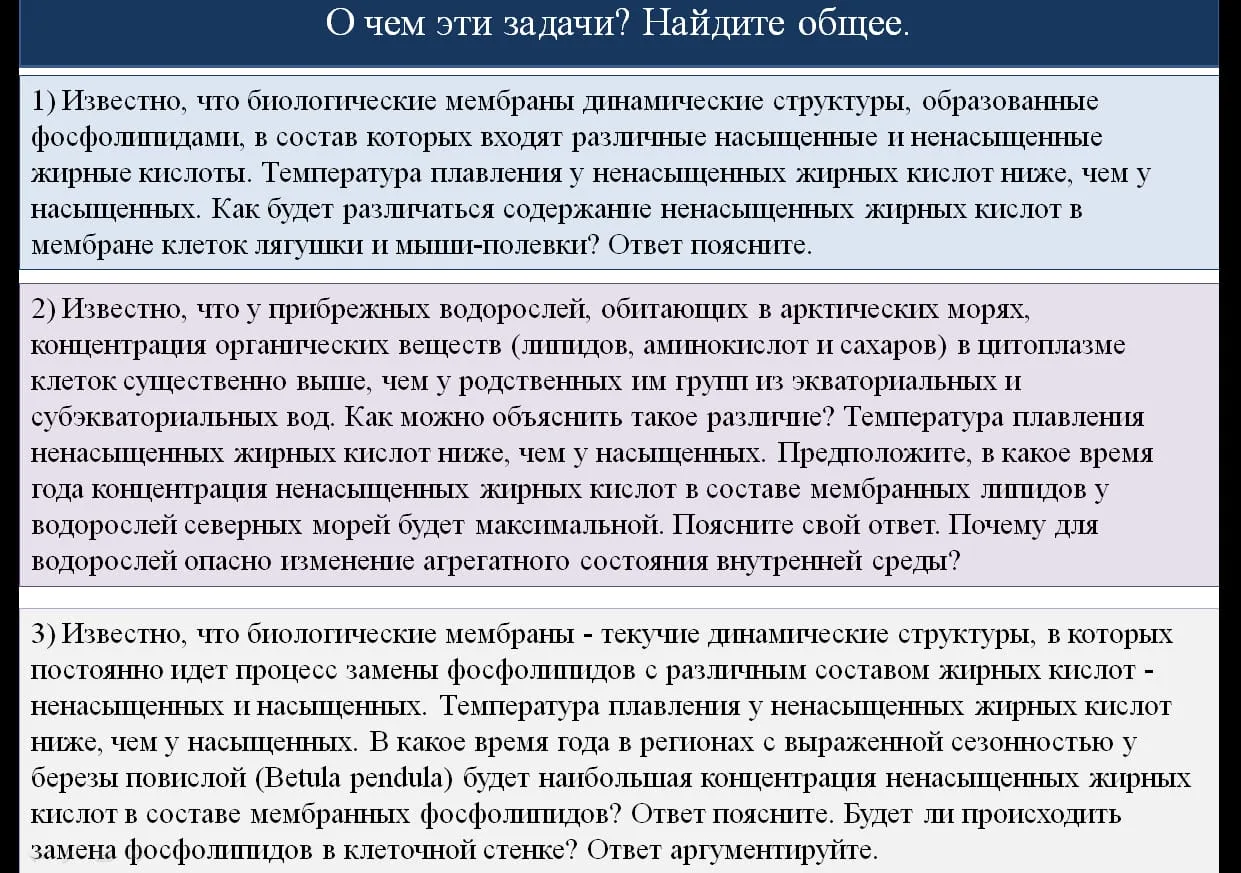 На примере биологических задач была показана необходимость комплексного применения знаний для объяснения физиологических процессов живых организмов.