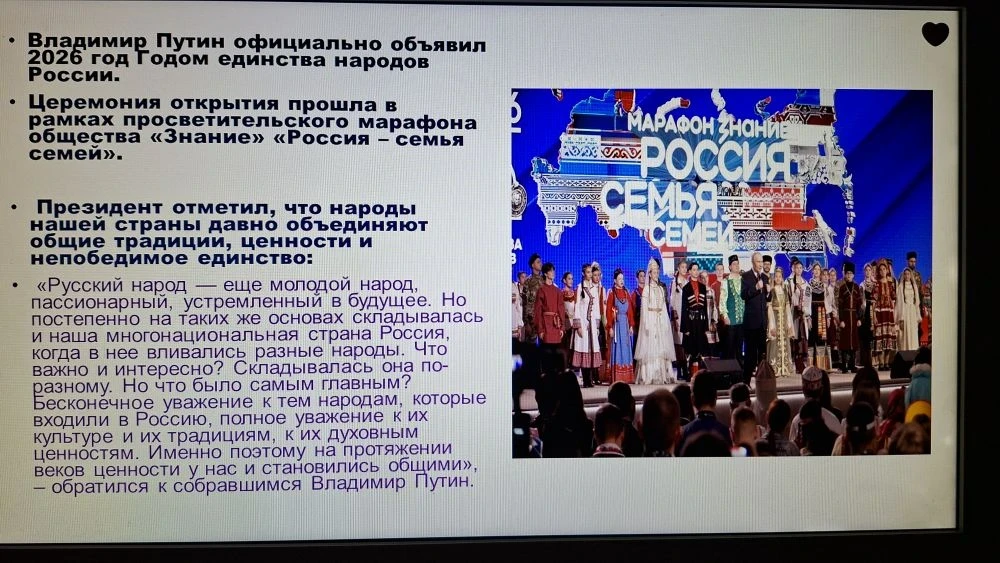 «Наша задача — сделать так, чтобы молодое поколение знало имена своих героев и равнялось на них. Более 600 встреч за неделю — это не просто цифра, это 15 тысяч юных сердец, в которые мы заложили зерно уважения к подвигу, любви к Родине и готовности служить своему народу. Особенно ценно, что мы используем Новеллы о героях СВО — живые, документальные истории, которые не оставляют равнодушными».