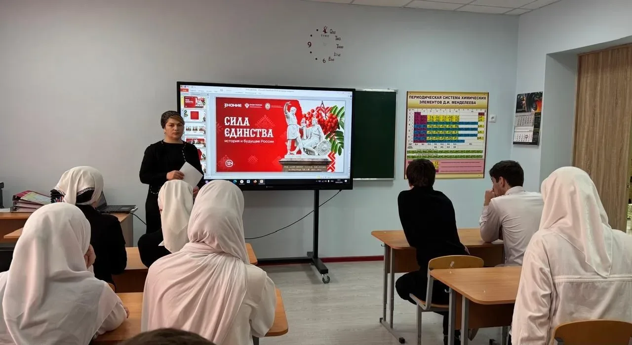 Также был представлен опыт торжественных мероприятий, посвященных открытию в образовательных организациях Чеченской Республики Года единства народов России.