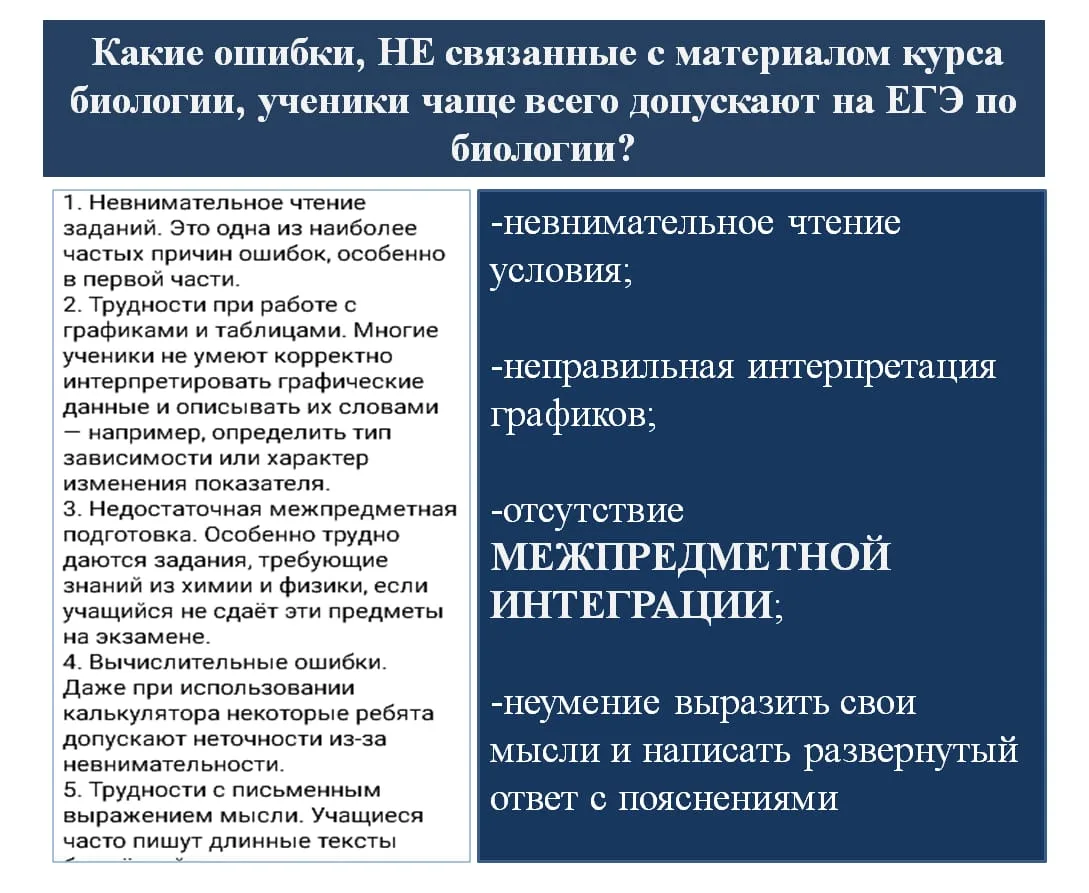 1.Типичные ошибки выпускников на ОГЭ/ЕГЭ по биологии в заданиях, требующих межпредметной интеграции для формирования естественнонаучной картины мира.