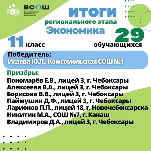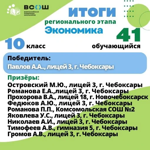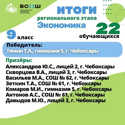 📚🏫В этом году Юлия достигла еще одной победы. Она приняла участие на региональном этапе ВсОШ по экономике и стала победительницей! Всероссийская олимпиада школьников является самым масштабным интеллектуальным состязанием в нашей стране. За этим успехом стоит огромная работа самого ученика, его педагогов и семьи. Есть уверенность, что полученный опыт станет прочным фундаментом для новых свершений.