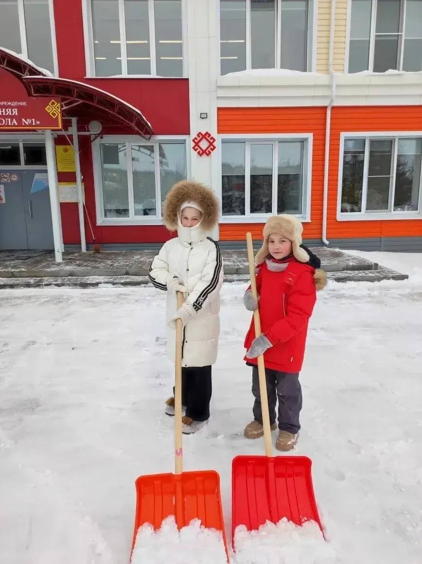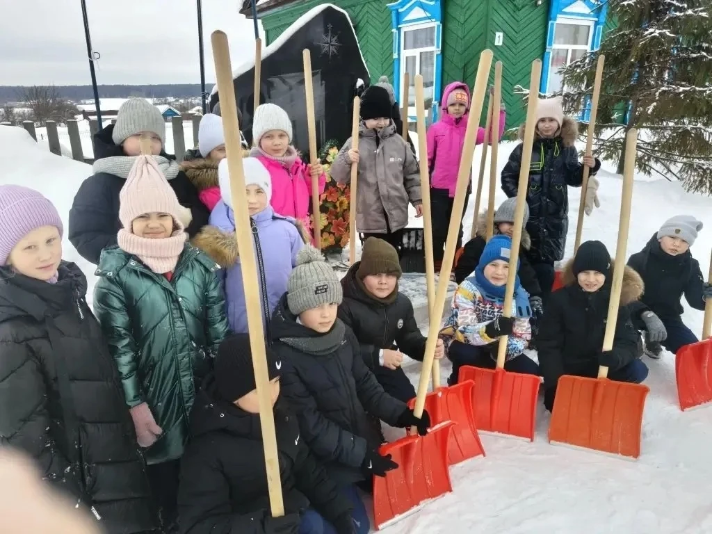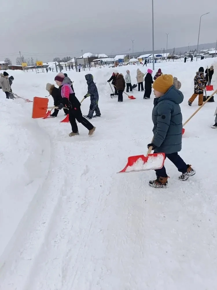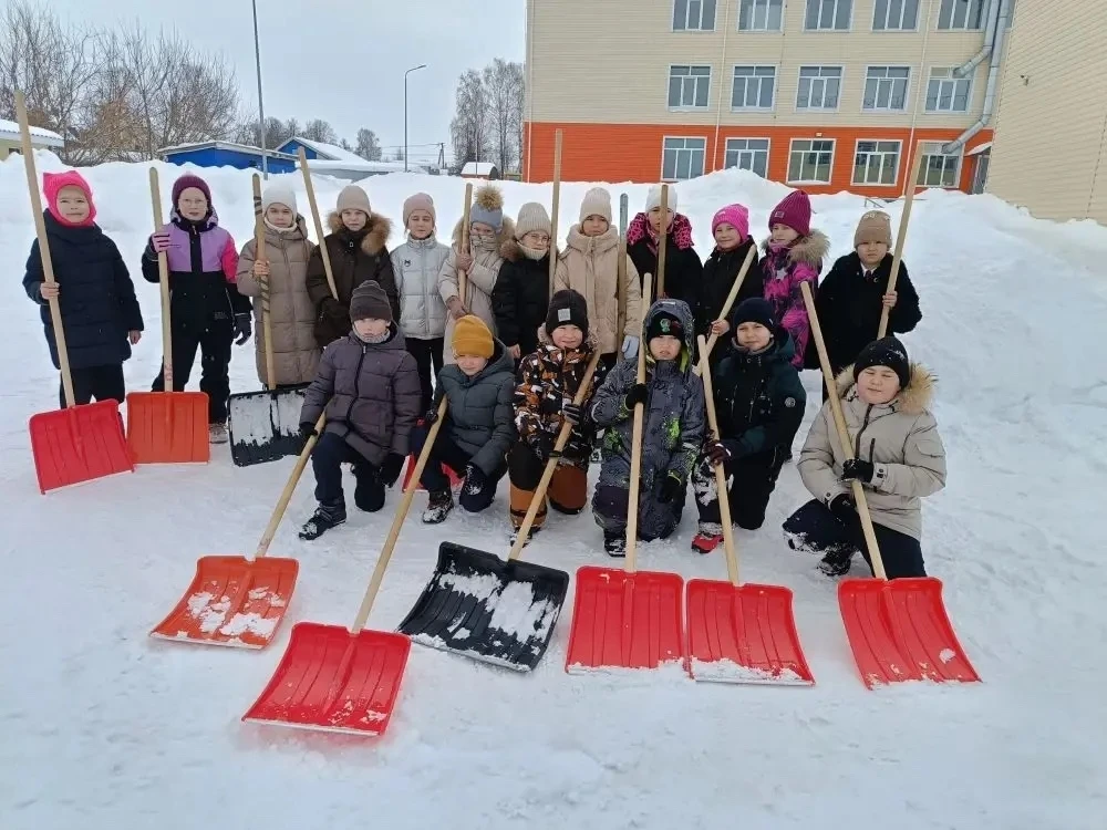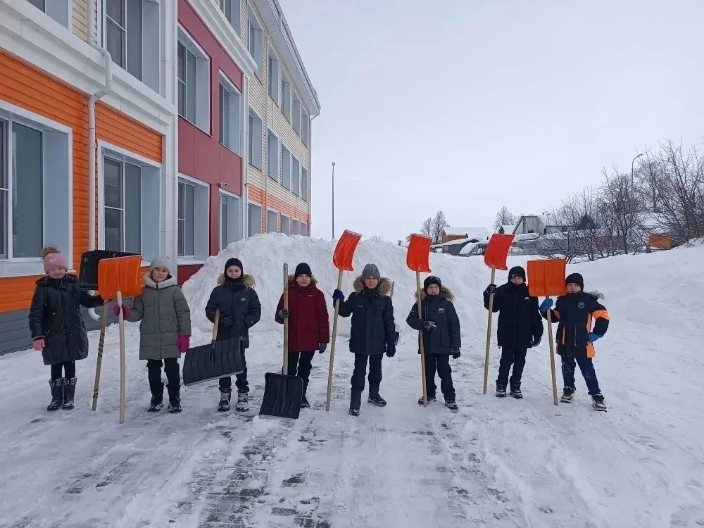 ❄️26 февраля, орлята 1б, 2в и 4б классов МБОУ «Комсомольская СОШ № 1», в рамках реализации трека «Орленок – Доброволец», вооружившись лопатами и хорошим настроением, дружно приняли участие в важном и нужном деле — расчистке школьного двора от снега.