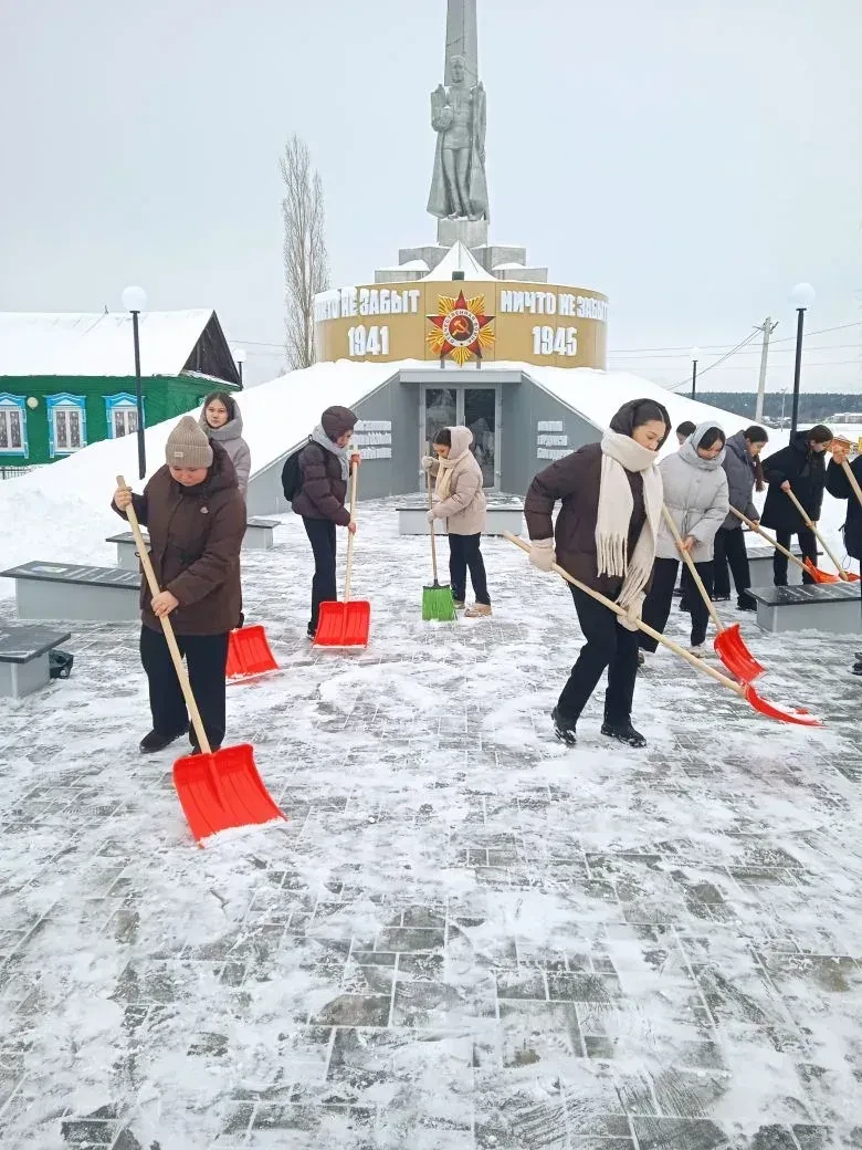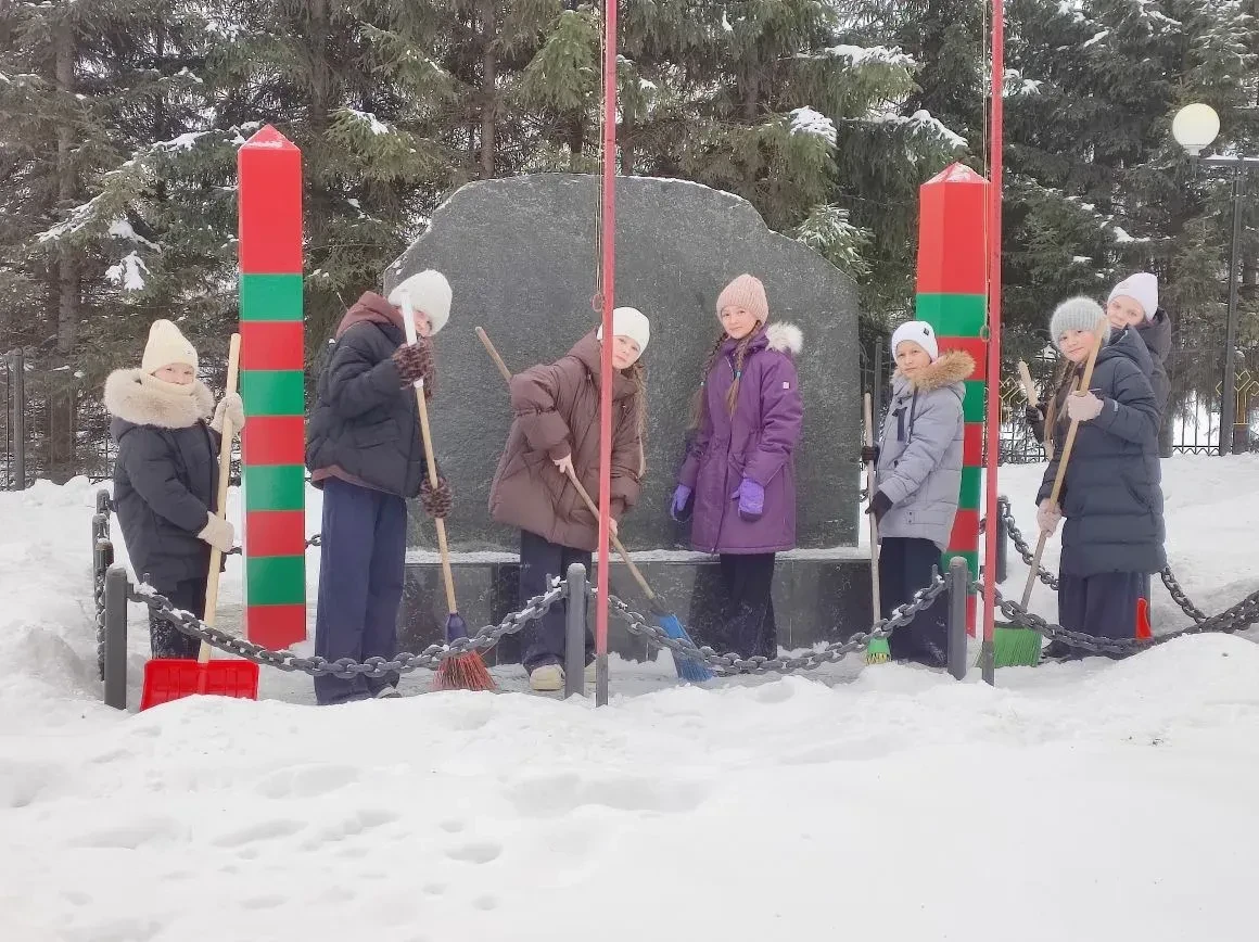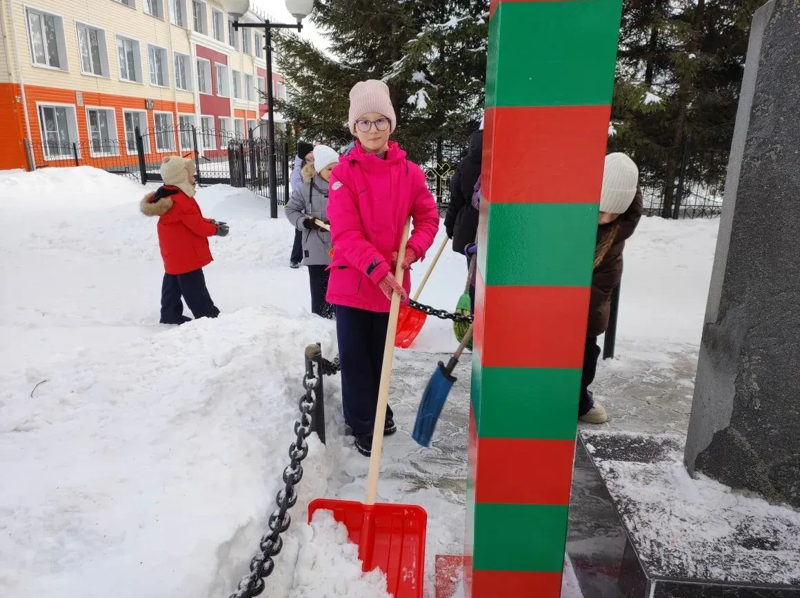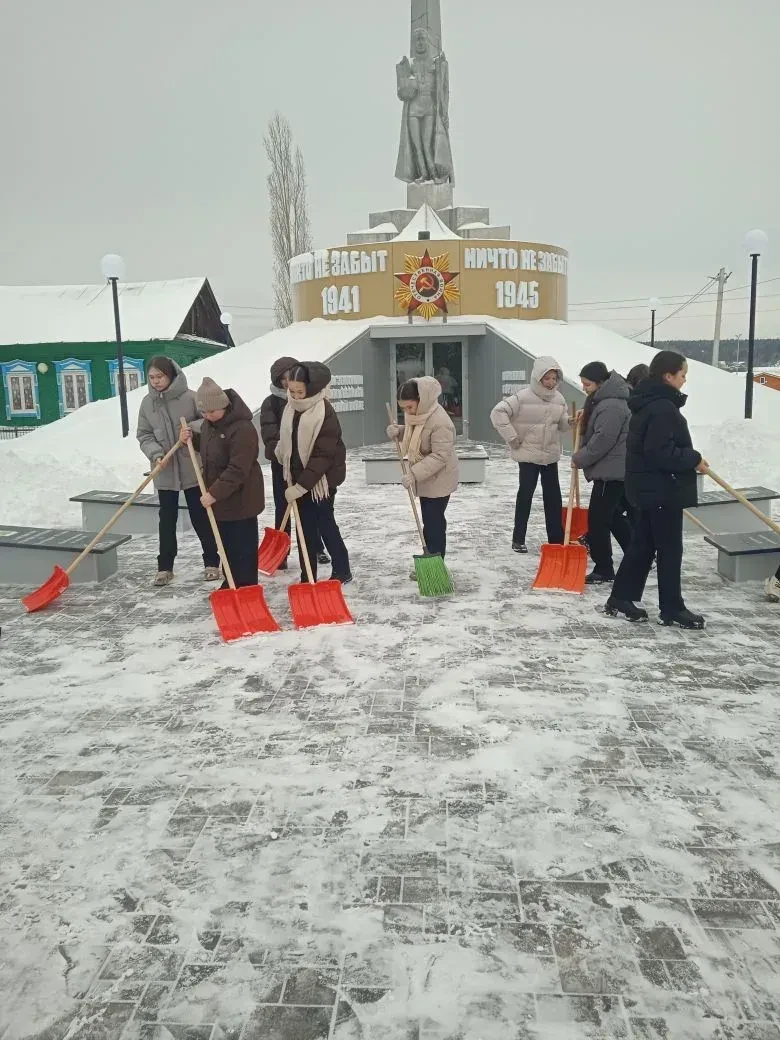 ⭐«Чистый обелиск» : Ученики 6 «А» и 8 «К» классов очистили от снега территорию монумента Славы.