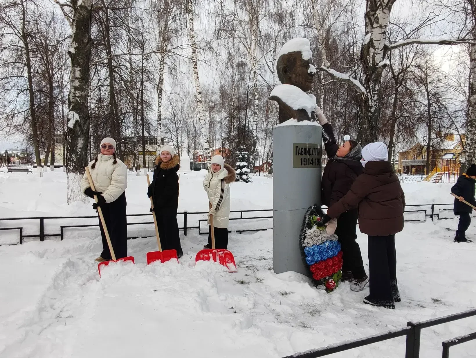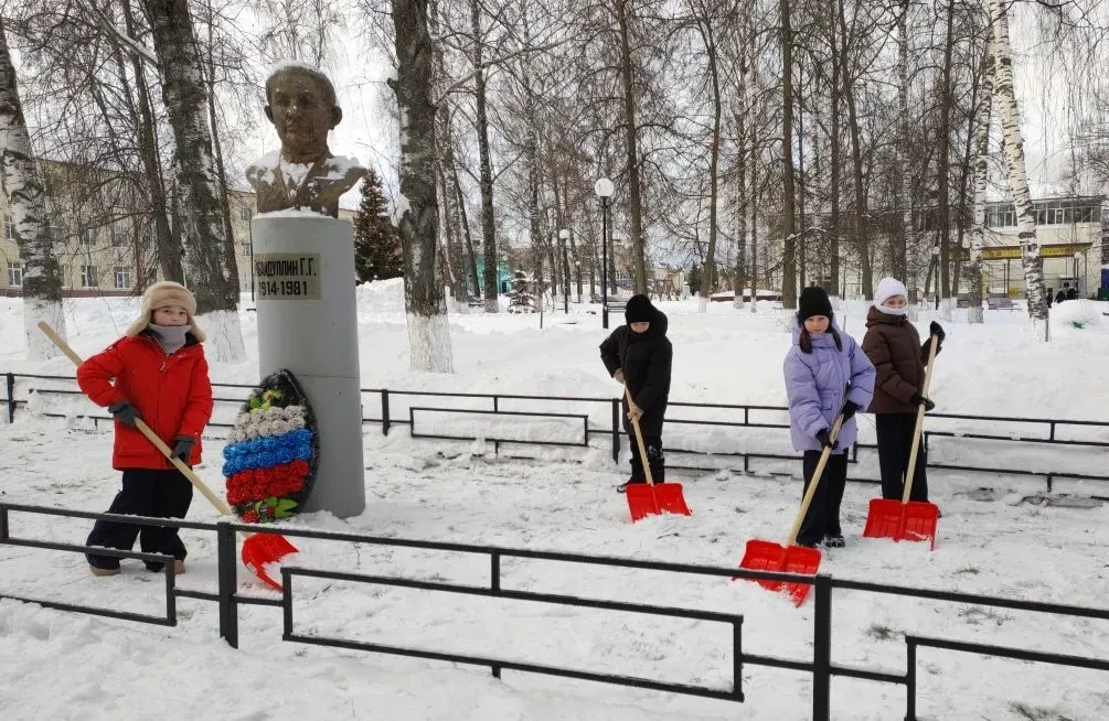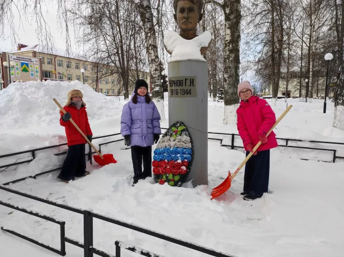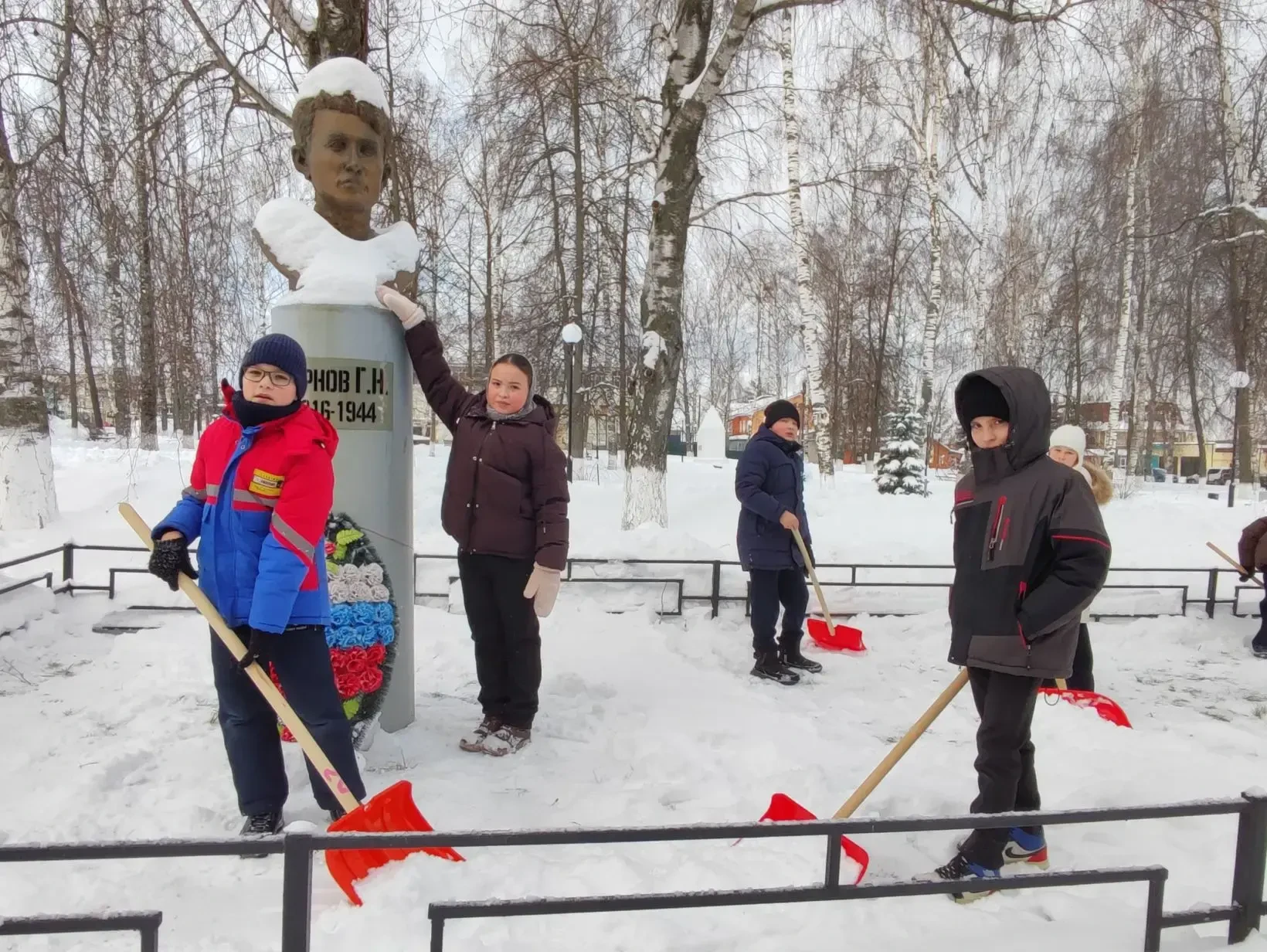 ⭐«Чистый обелиск» : Ученики 6 «А» и 8 «К» классов очистили от снега территорию монумента Славы.