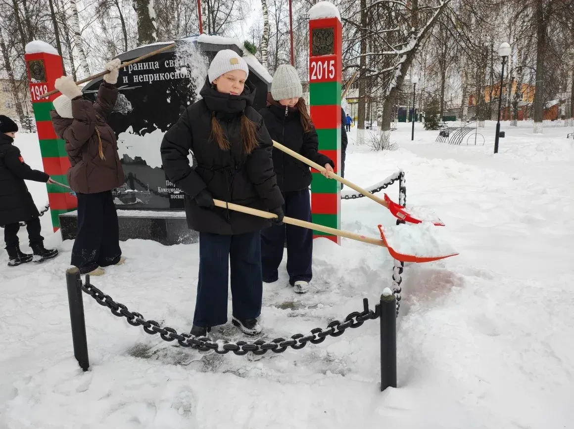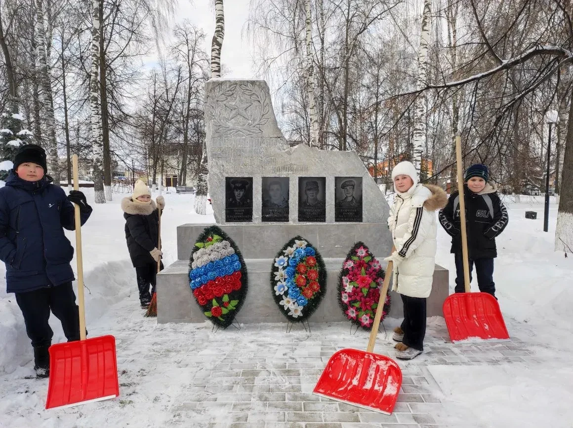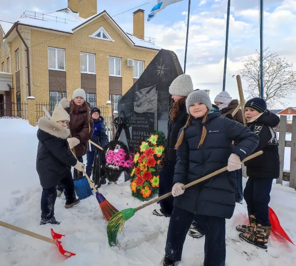 ✨🔸Сегодня орлята 4 «б» класса совместно с классным руководителем Т.Г. Лапшиной и советником директора по воспитанию П.В. Родионовым приняли участие в важной миссии — уборке снега на территории монумента Славы, аллеи Героев Великой Отечественной войны, а также памятников: морякам, участникам ГСВГ и воинам, погибшим в чеченских событиях.