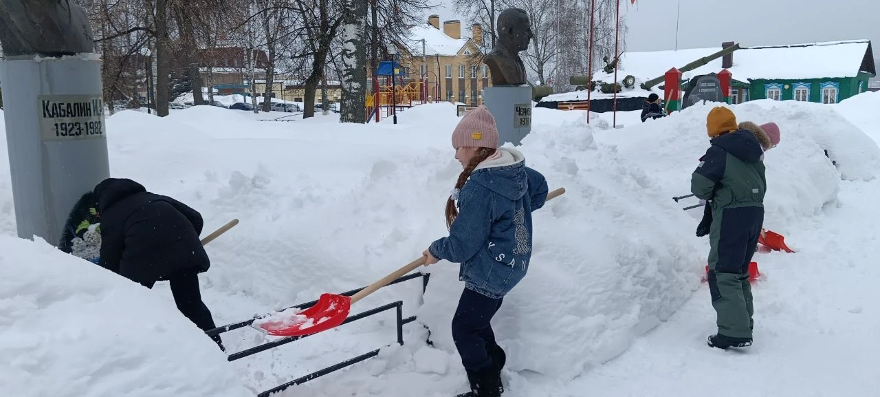 🎗Целью акции стало благоустройство и очистка от снега священных для каждого жителя мест воинской славы. Ребята дружно поработали на территории аллеи Героев Великой Отечественной войны, а также памятников морякам и пограничникам.