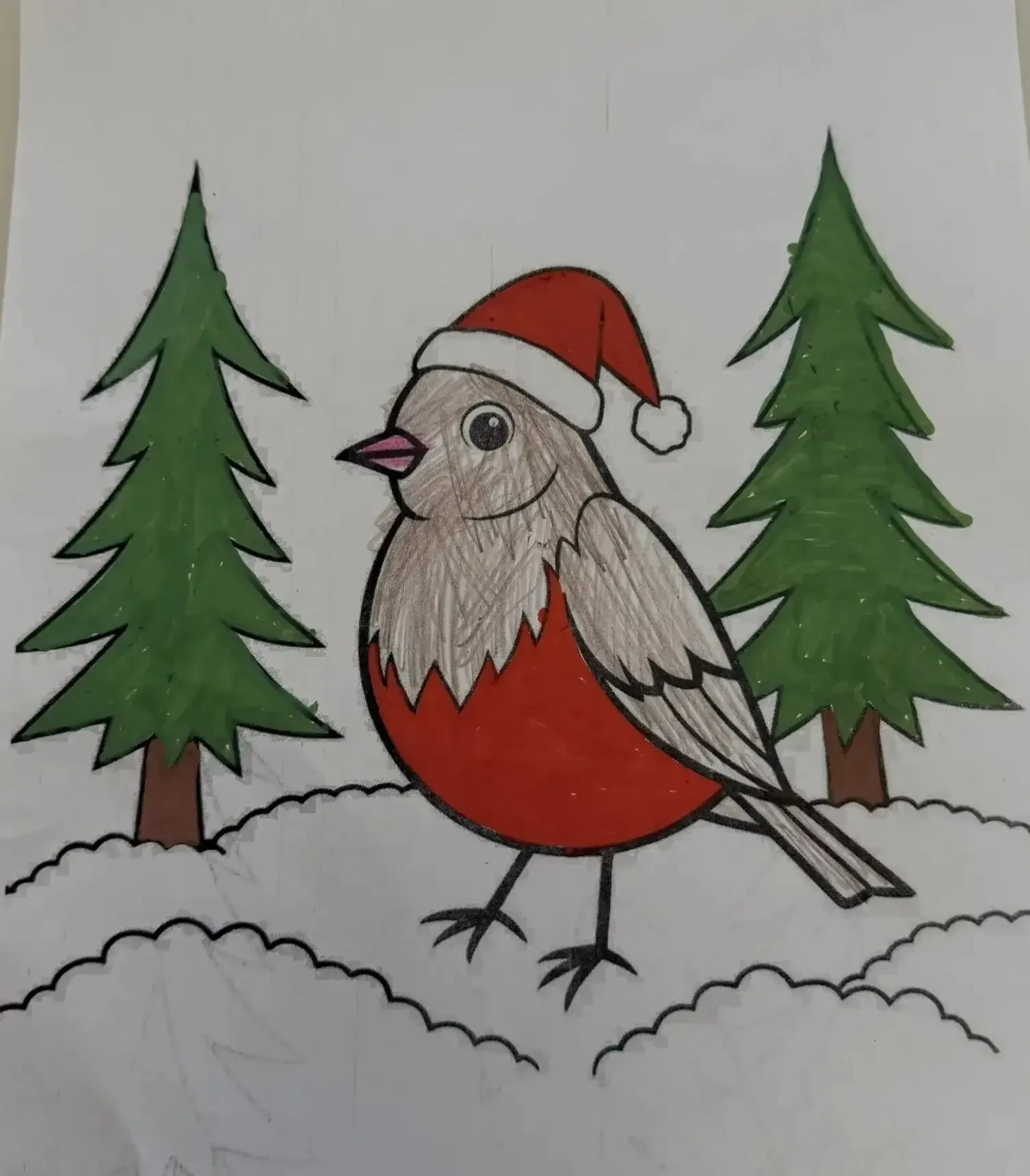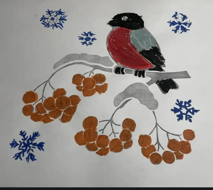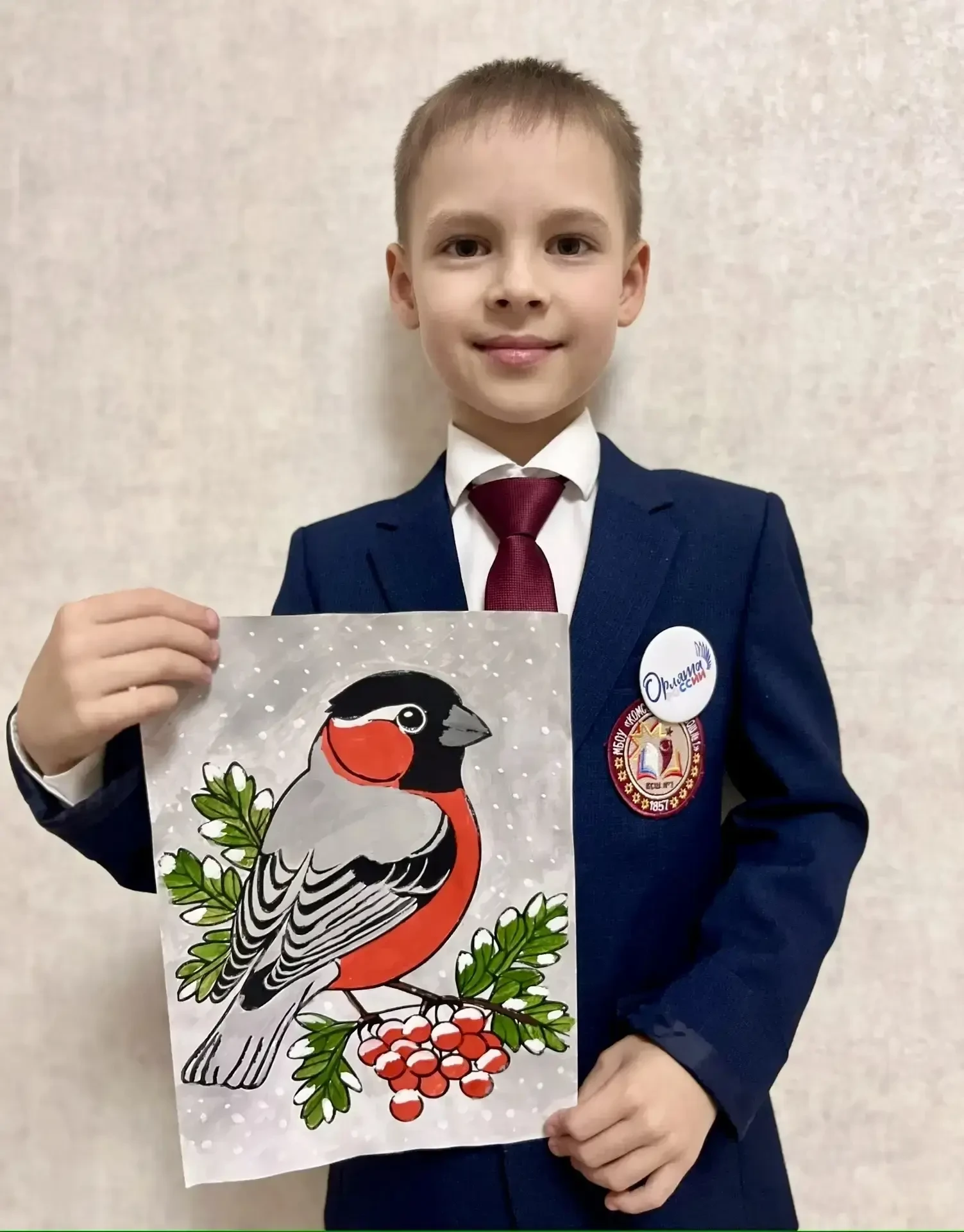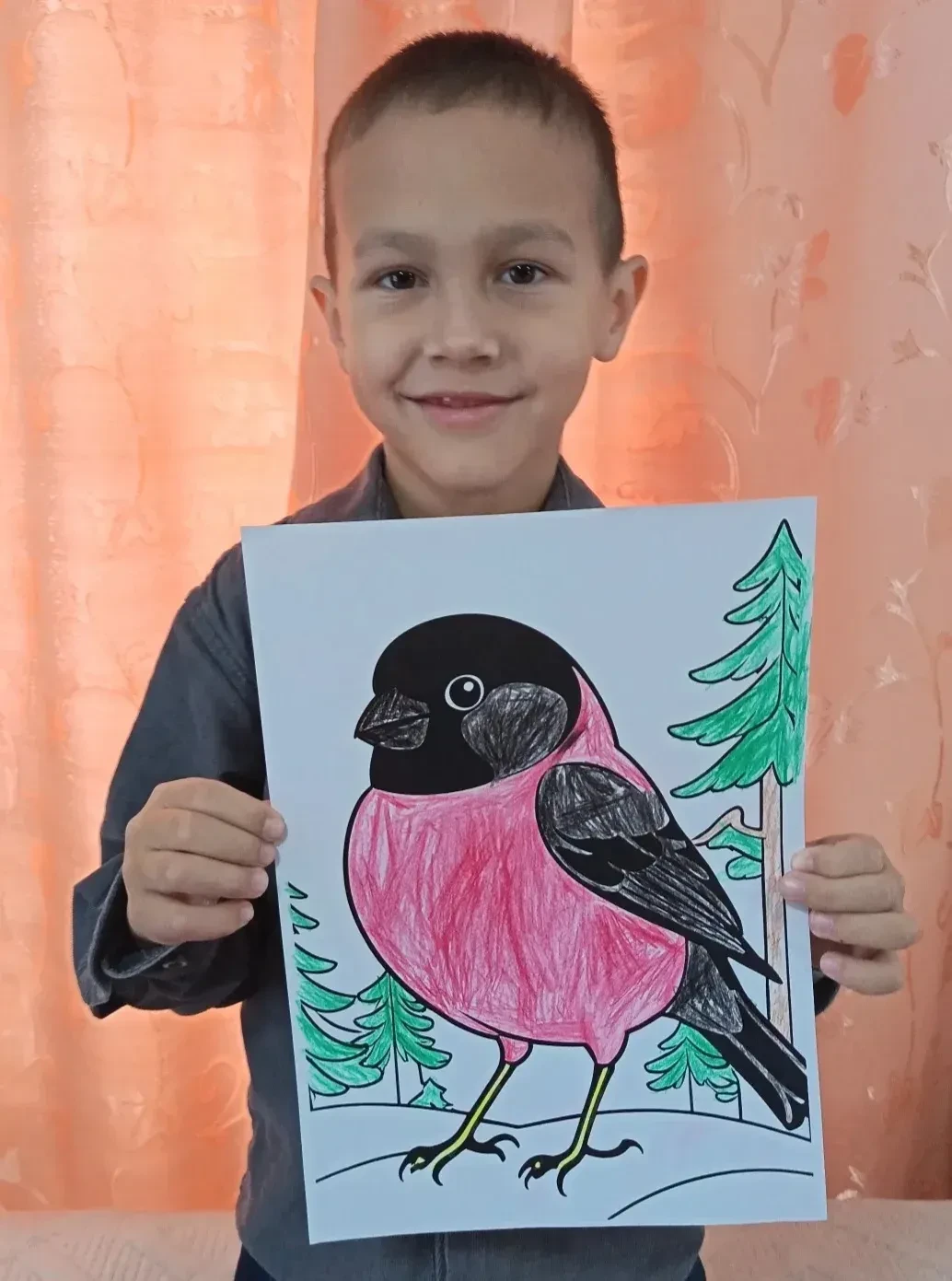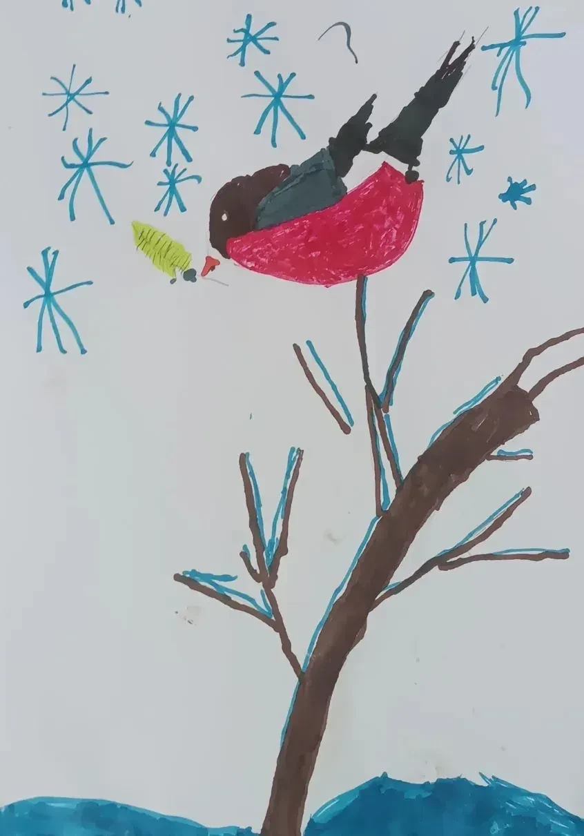 🔺🎨Ученики 1 «Б» класса нарисовали снегирей. Теперь они станут внимательнее присматриваться к птицам и смогут заметить среди них красногрудых снегирей.