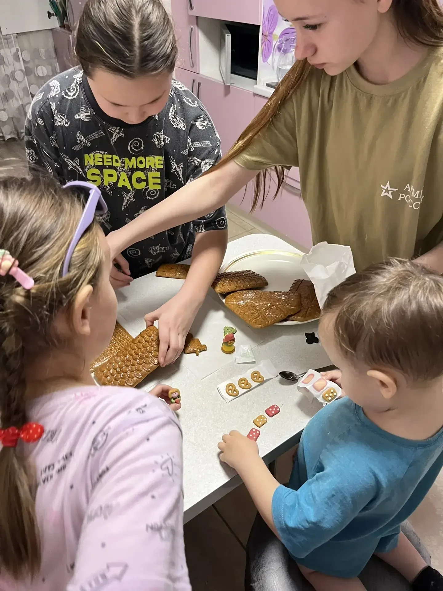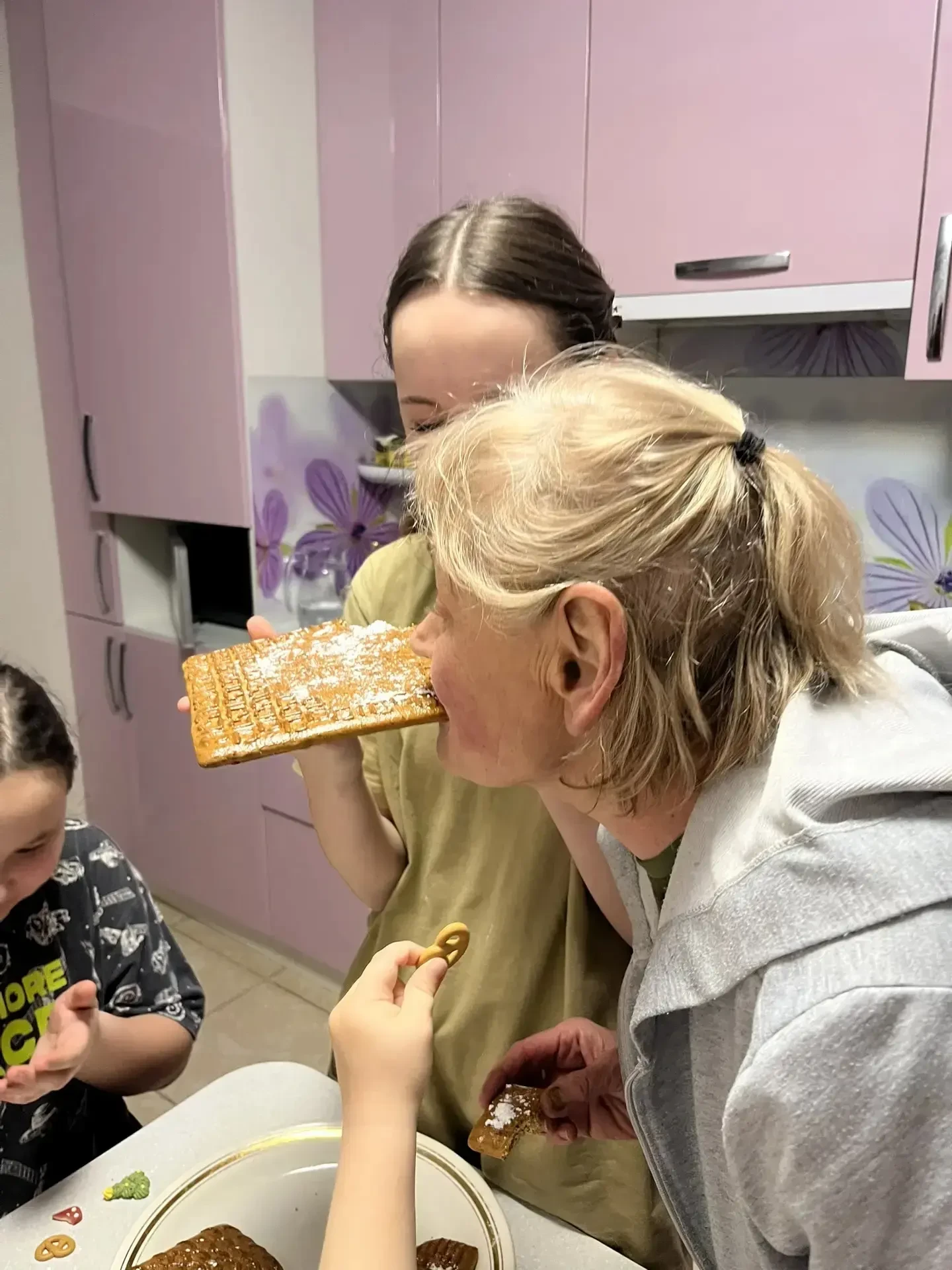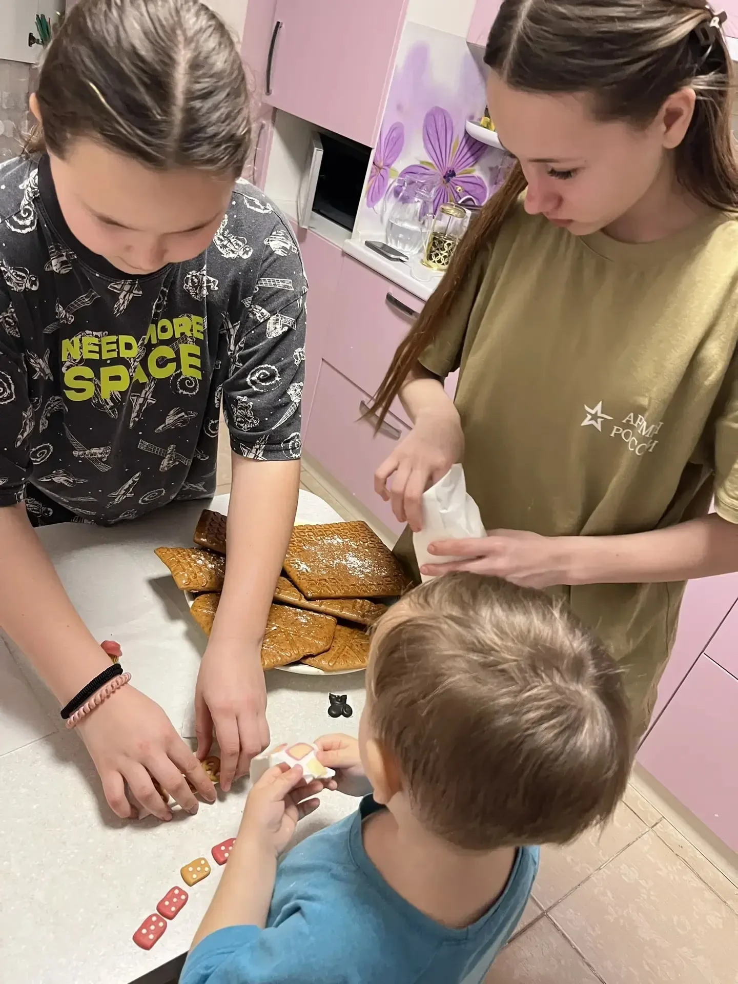 ✨👩🍳Сегодня семейный вечер Ульяны прошёл за созданием съедобных шедевров — это незабываемо. Пряничный домик — это целая история, полная волшебства и вкуса. Это самая настоящая сказка в реальности! ✨❤️Какая уютная атмосфера царила на кухне. Вся семья за делом. Каждый член семьи вкладывает в общее дело свои умения и фантазию — получается не просто пряничный домик, а волшебный объект, наполненный любовью и совместными воспоминаниями. Дом наполняется божественным запахом праздника. Волшебство сборки- самый ответственный момент!