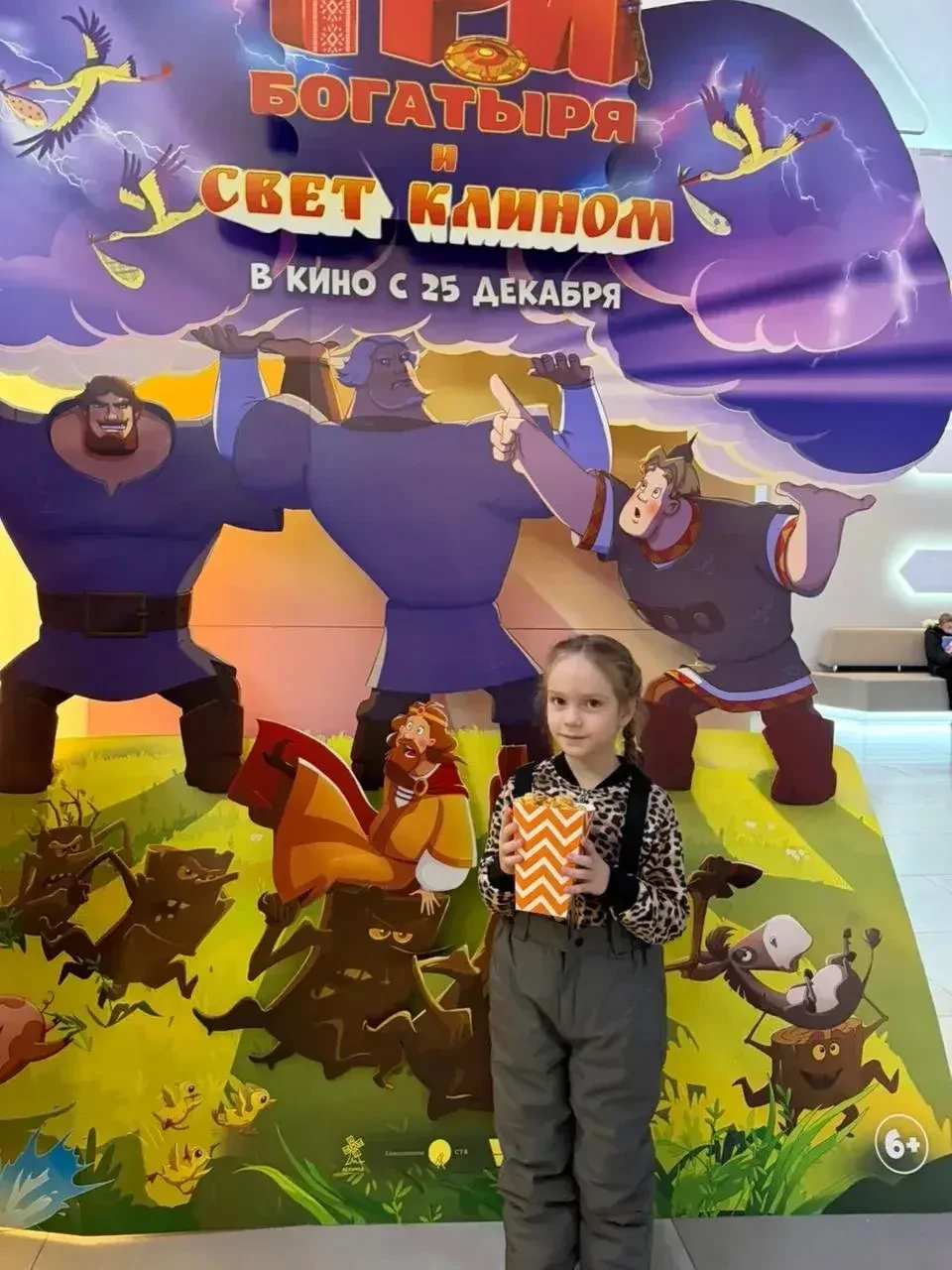 🌟 Каникулы в самом разгаре! 🎉🎀Ученица 1А класса Ахметова Азалия отлично проводит свои каникулы! На днях она посетила кинотеатр и посмотрела мультфильм «Три богатыря». 🍿🎬