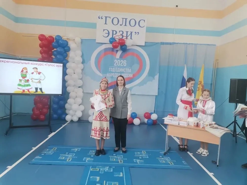 🎶Учащиеся МБОУ «Комсомольская СОШ №1» участвовали в Межрегиональном творческом конкурсе «Голос эрзи – 2026». В текущем году этот конкурс был посвящен Году единства народов России, Году дружбы народов в Чувашии и 120-летию Никулы Эркая.