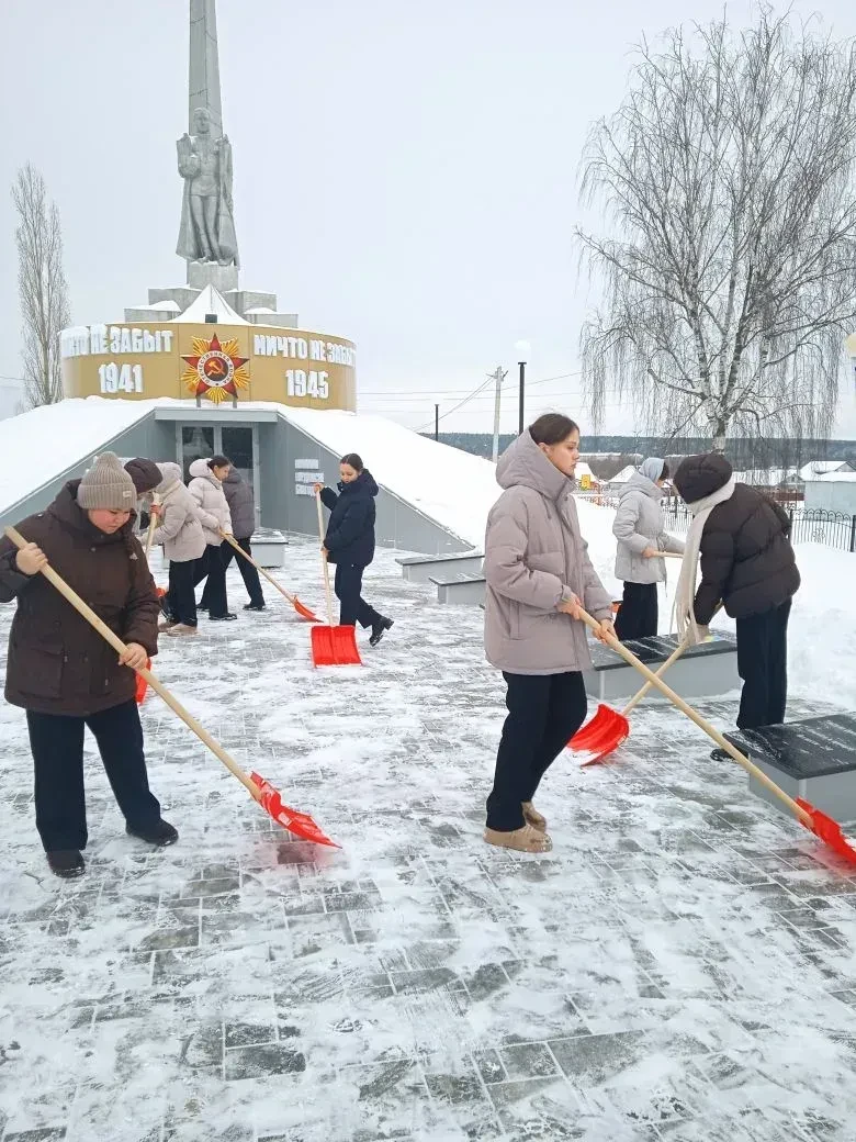 🔺Пример взрослых : Технический персонал школы бережно очистил монумент Славы от зимней наледи, показав на деле заботу об истории.