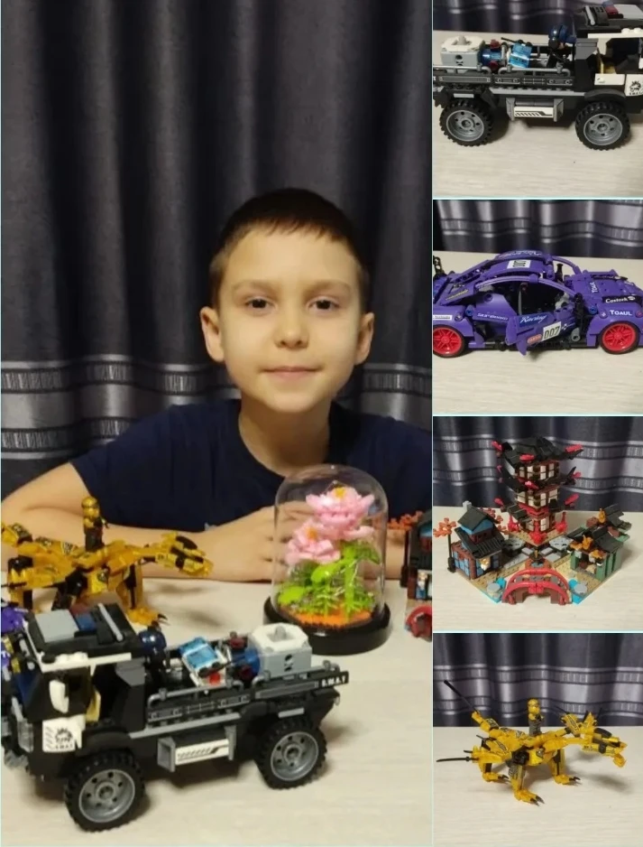 🧩 Часть своих дней Даниил посвящает Lego-конструированию. Из сотен деталей он создает целые миры, развивая инженерное мышление, терпение и фантазию. Это не просто игра — это настоящее творчество!