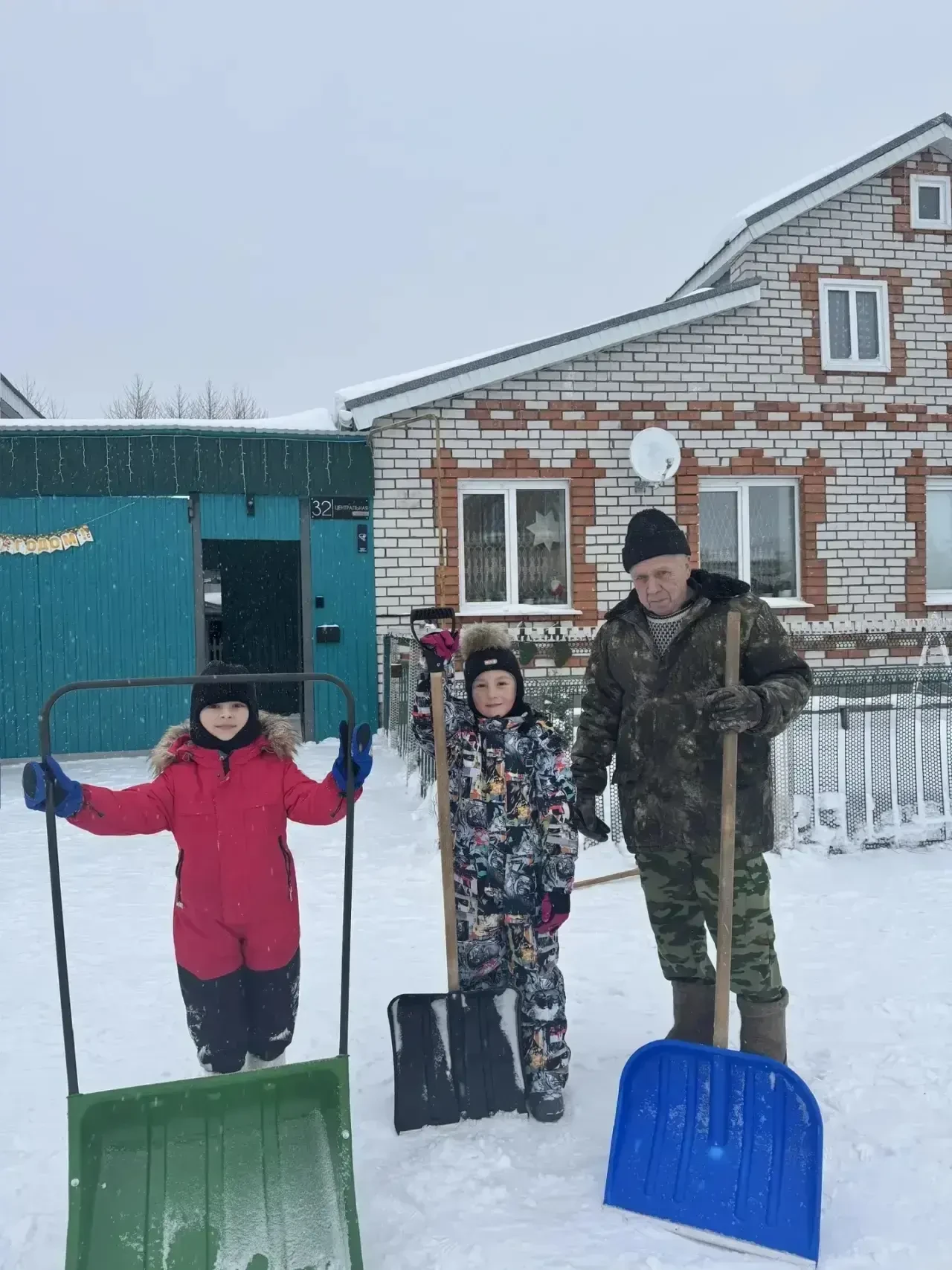 🔺🧹Команда 1 «Б», гордые «орлята России», приняла вызов. Вооружившись лопатами, ребята отправились помогать бабушкам и дедушкам — расчищать снег у подъездов и во дворах.
