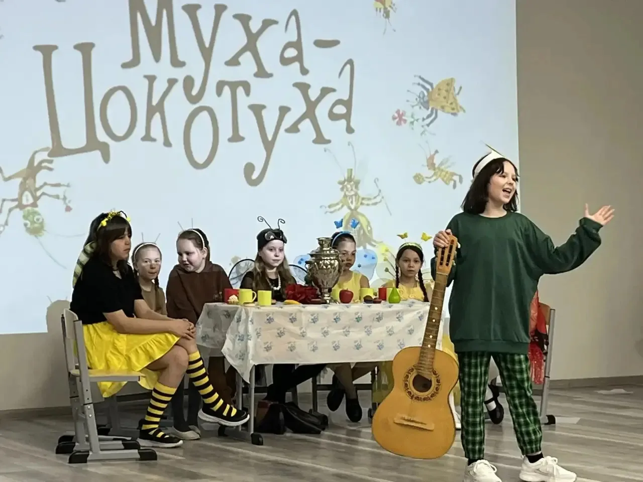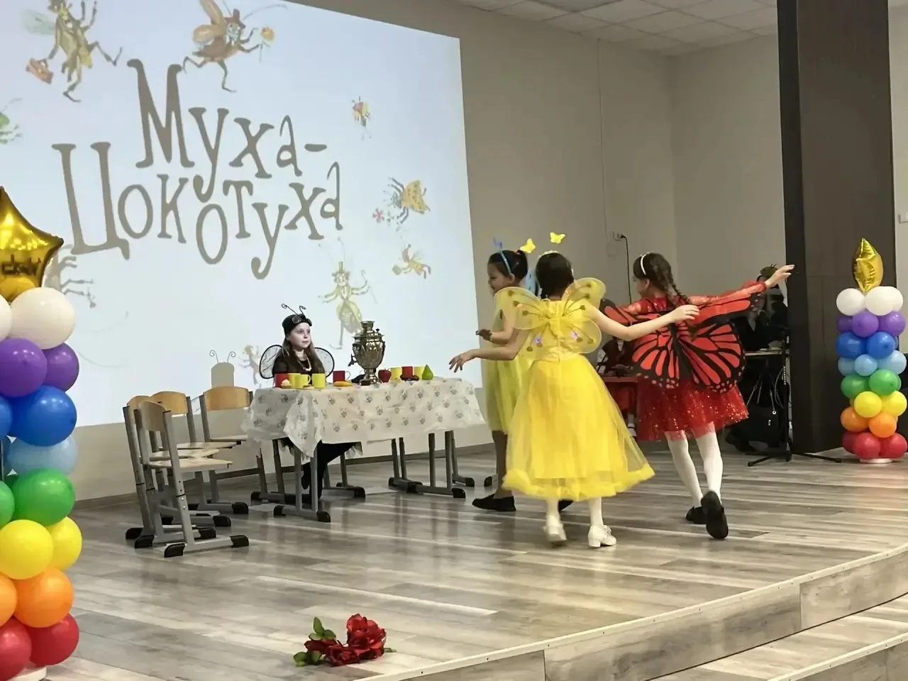 🎭 В преддверии конкурсного показа в рамках городского фестиваля театральных коллективов «Волшебный занавес» артисты школьного театрального кружка представили репетиционный спектакль по сказке «Муха-Цокотуха» Корнея Чуковского. Зрителями стали ученики 1–4 классов.
