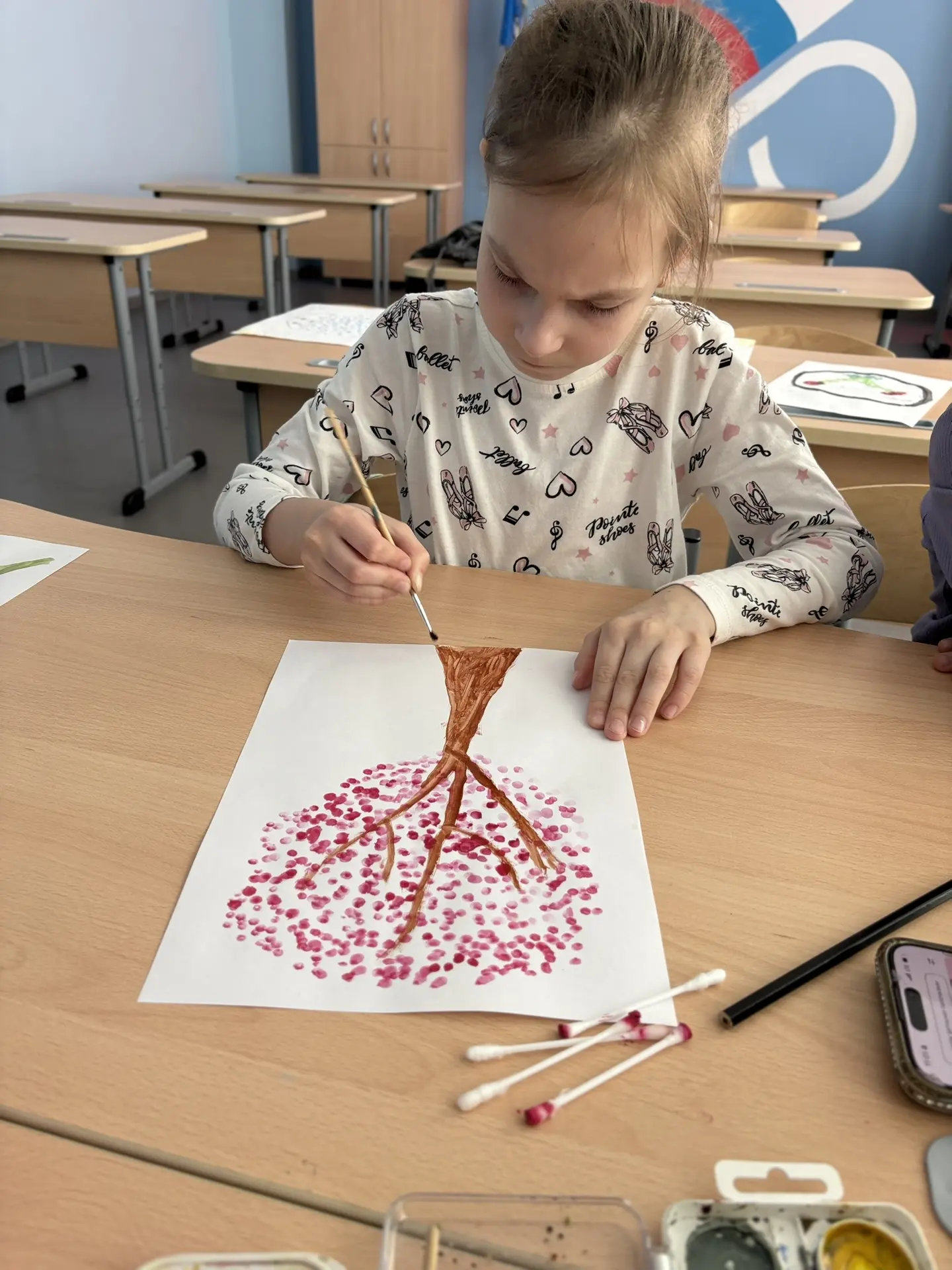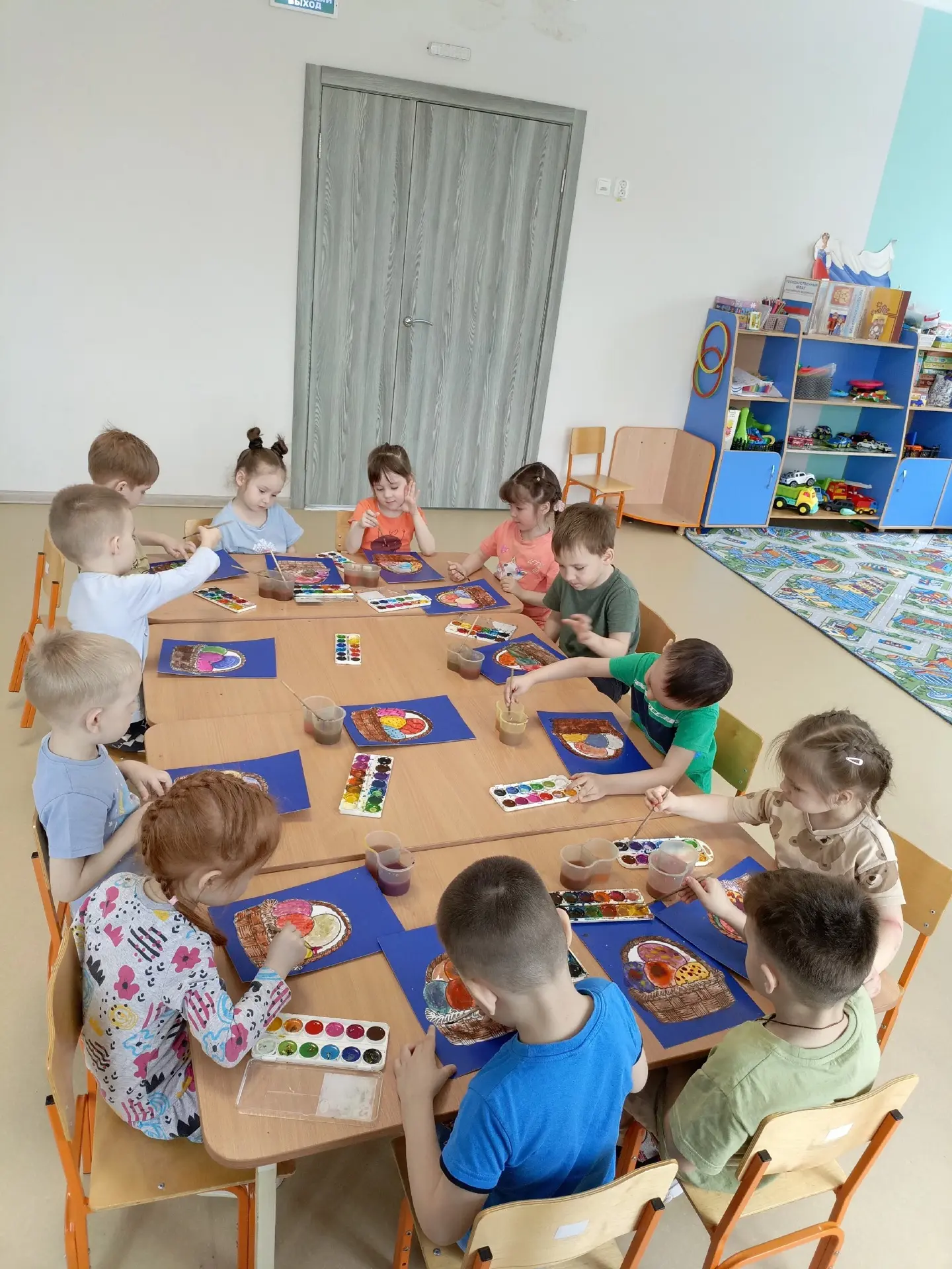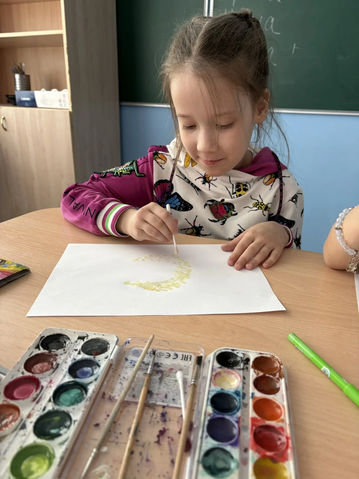 А после музыкальной разминки дети создавали яркие и неповторимые рисунки при помощи ватных палочек. Это занятие не только развивало их творческие способности, но и помогало расслабиться и весело провести время.