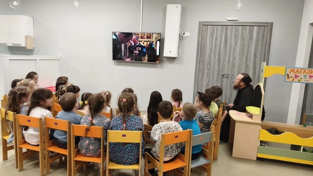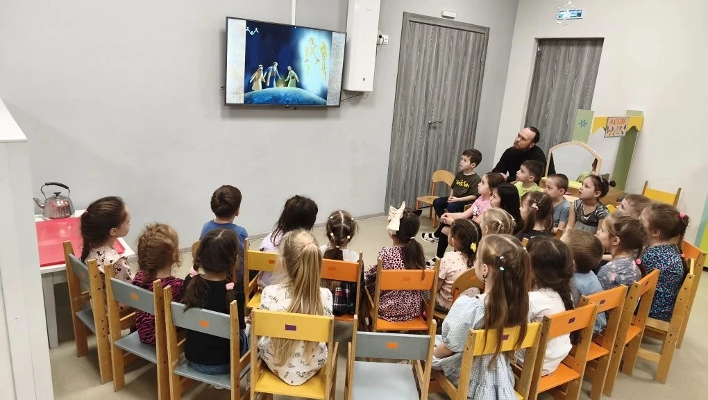 Сначала дети посмотрели увлекательный мультфильм, рассказывающий историю о рождении Спасителя мира — Иисусе Христе. Ребята узнали о Деве Марии, Иосифе, волхвах и Вифлеемской звезде. Затем воспитанники вместе с батюшкой пели рождественские колядки и получили сладкие подарки.