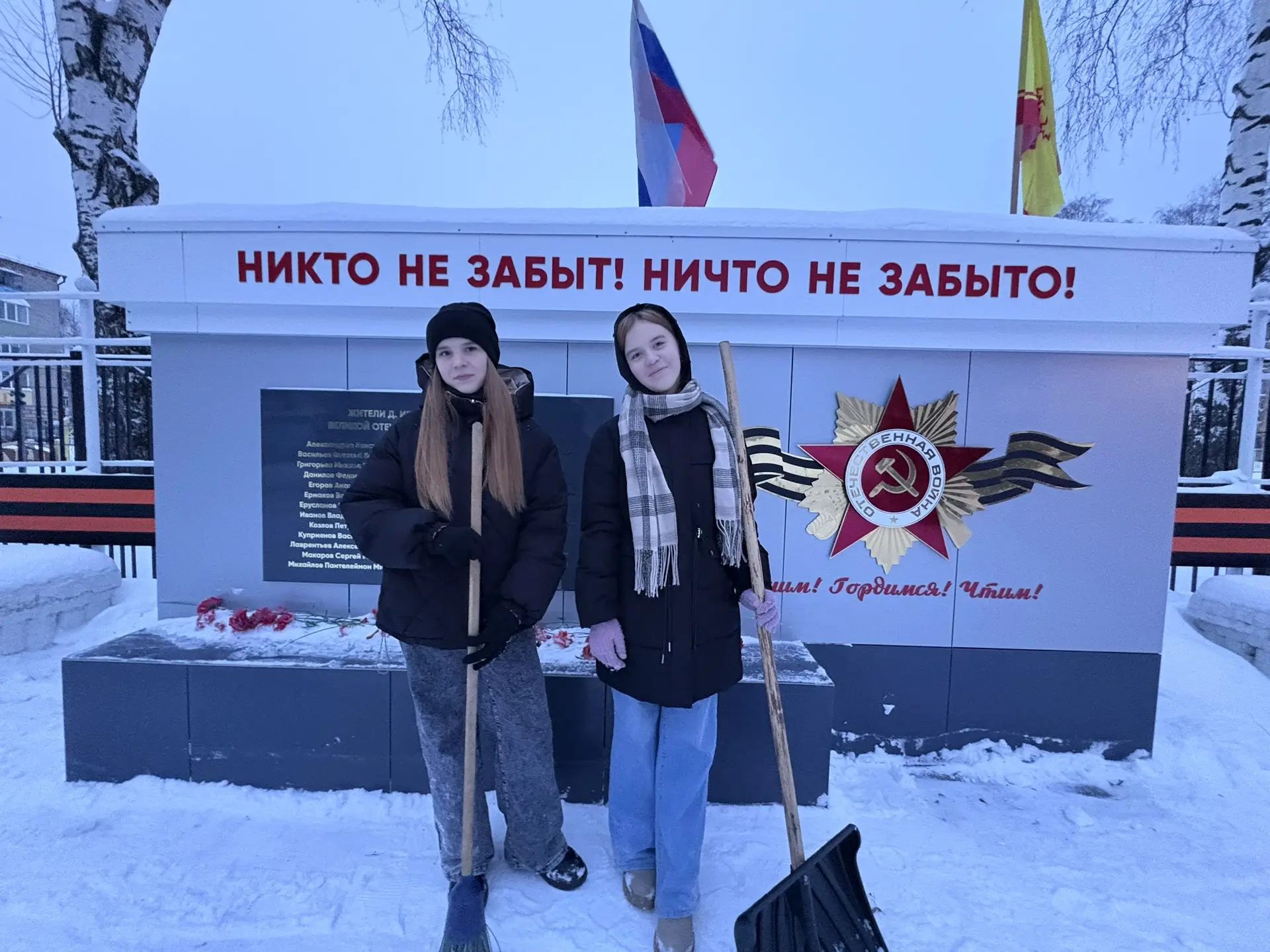 Каждый год школьники с заботой ухаживают за мемориалом, ведь память жива, пока её помнят.