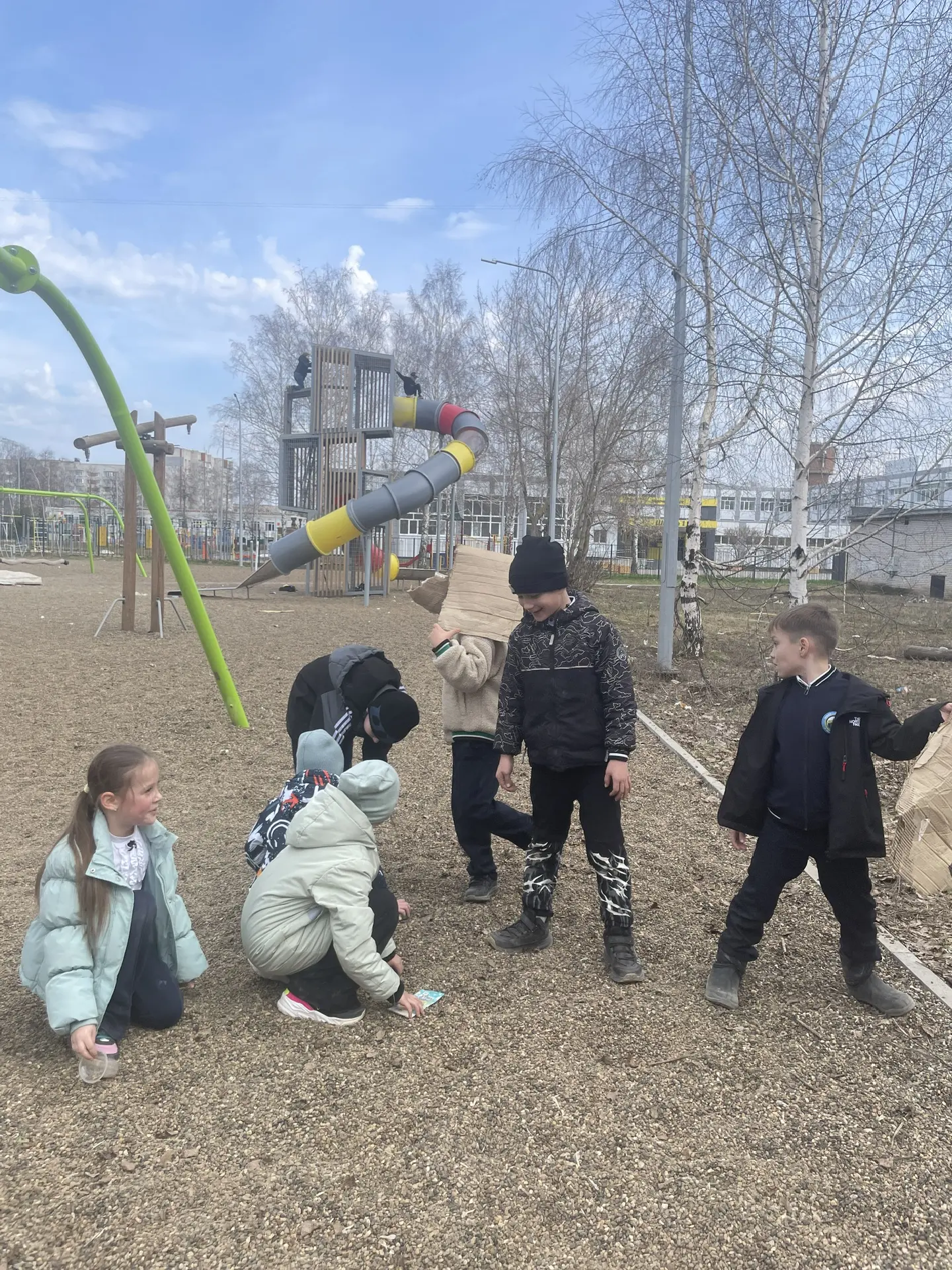Ребята решили внести свой вклад в благоустройство школы и привели в порядок территорию вокруг здания — собрали мусор, который накопился за зиму. 👏