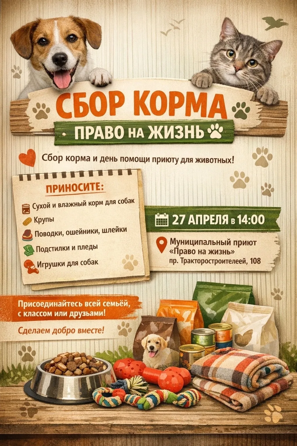 Друзья, приглашаем вас на доброе дело - сбор корма и день помощи приюту для животных.