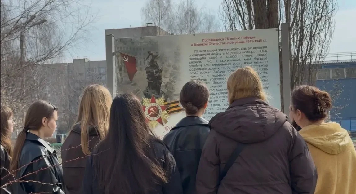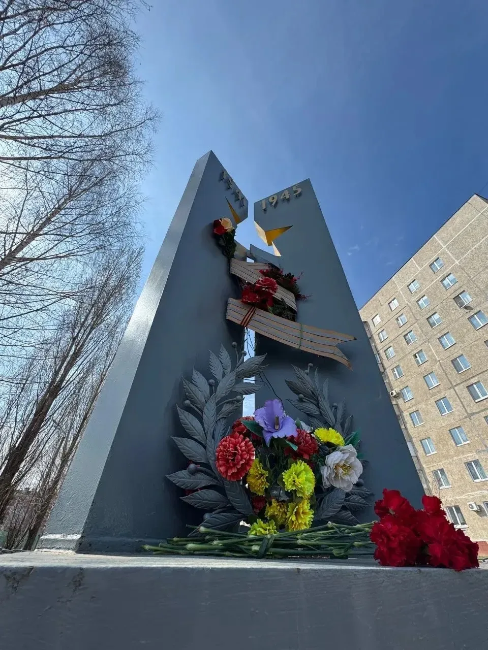 Ребята убрали и подмели территорию, а также произвели обкопку кустарников. Памятник имеет глубокий символизм: две стелы, олицетворяющие фронт и тыл, объединяет прорезной силуэт солдатской звезды, ниже которого расположены Георгиевская лента и лавровый венок — символ Победы.