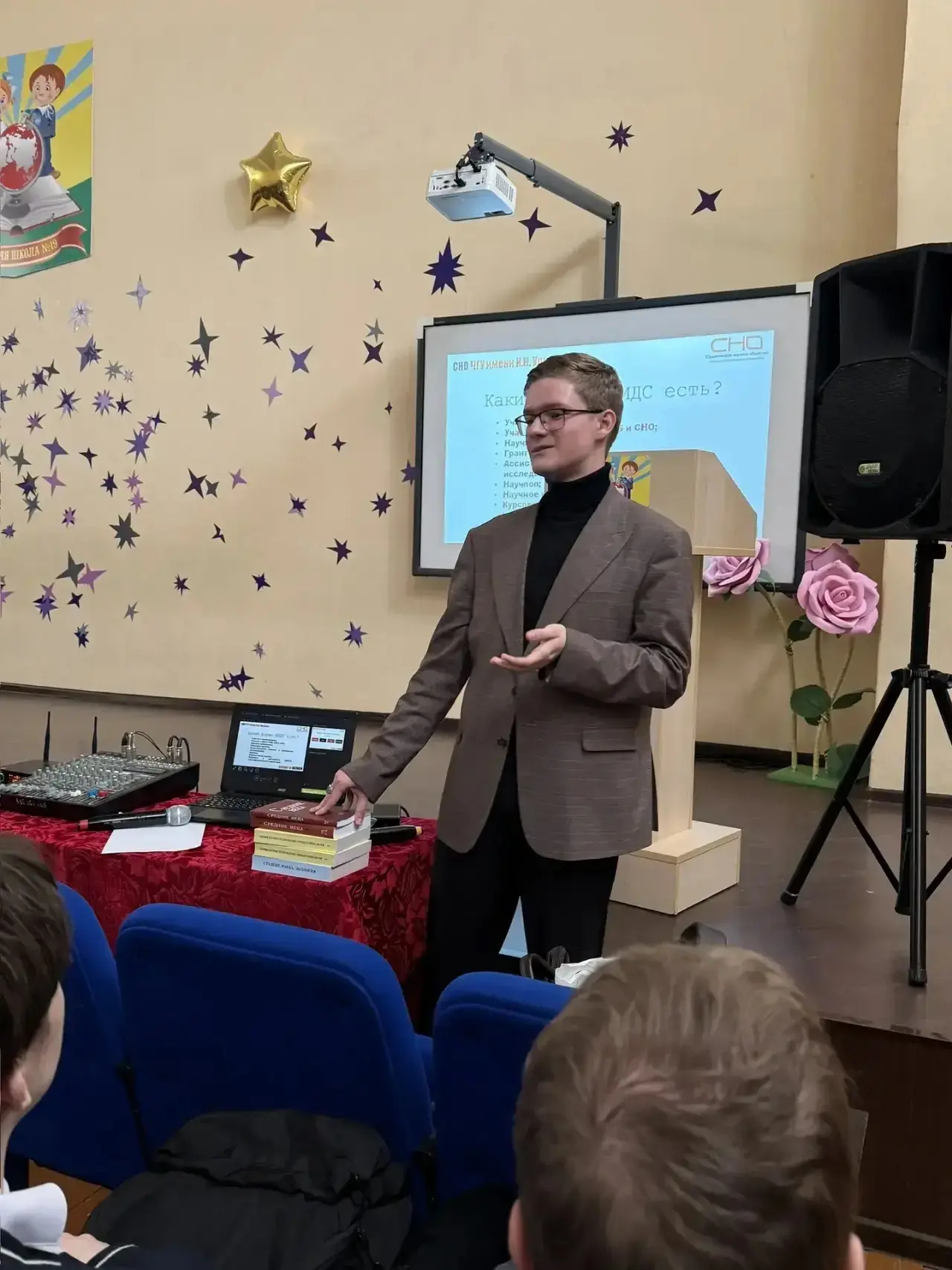 Также он рассказал про возможности школьников и студентов в науке, и остановился на структуре СНО ЧГУ и деятельности общества.