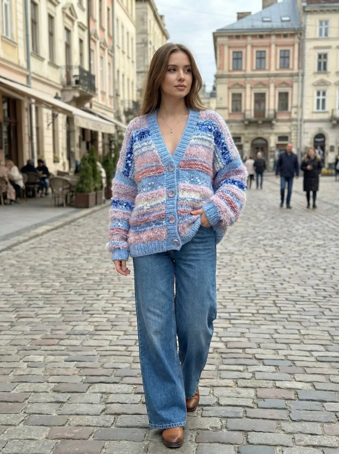 Каждого набора хватит на джемпер или кардиган до 50размера. Вязать можно как по кругу, так и отдельными деталями. За основу взять базовый джемпер или кардиган.