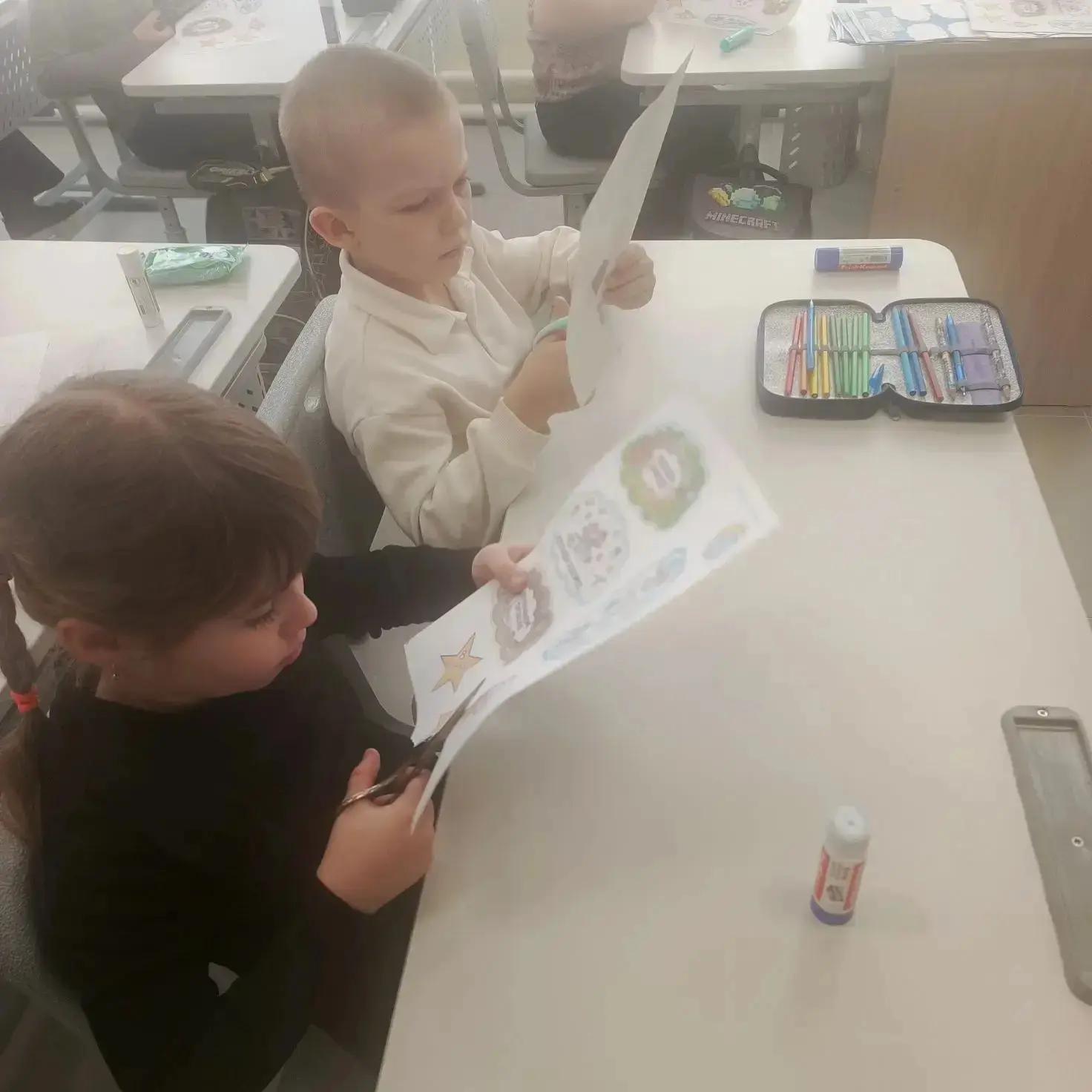 Сегодня ученики 2-Б класса ко Дню Российской науки подготовили красивые открытки. В ходе занятия ребята узнали, чем занимаются учёные и какое значение их открытия имеют для мира.