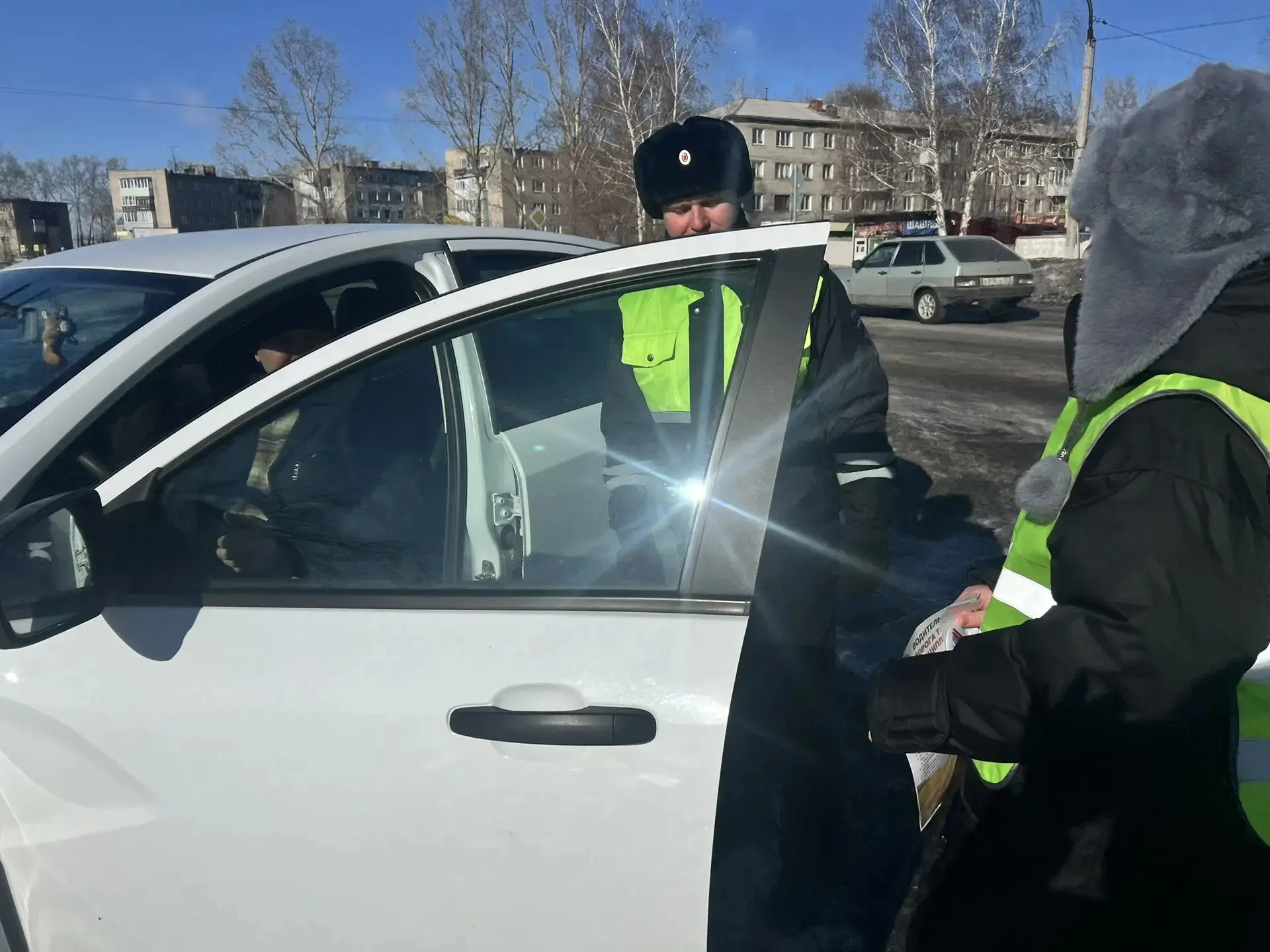 Вручая поздравительные открытки и зачитывая праздничные стихи водителям, они желали всем " безопасного руля", и чтобы только зелёный сигнал светофора каждому сопутствовал.