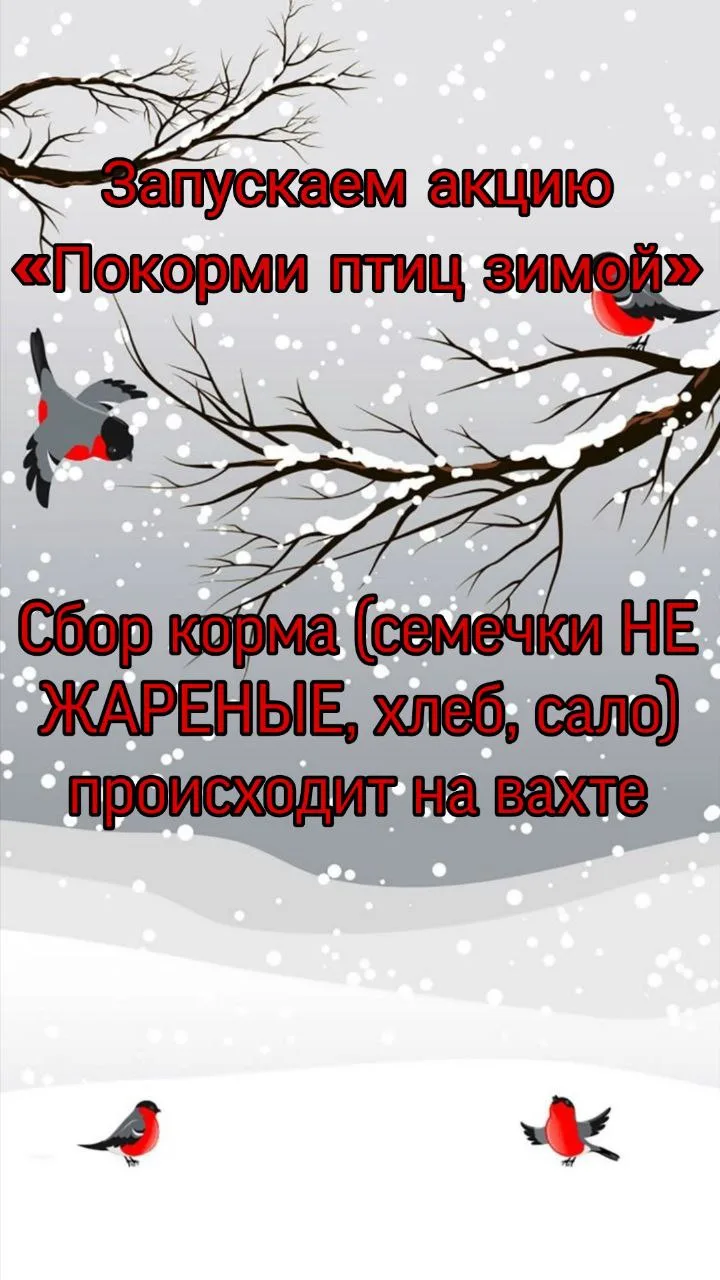 Сегодня мы запускаем добрую акцию «Покорми птиц зимой».