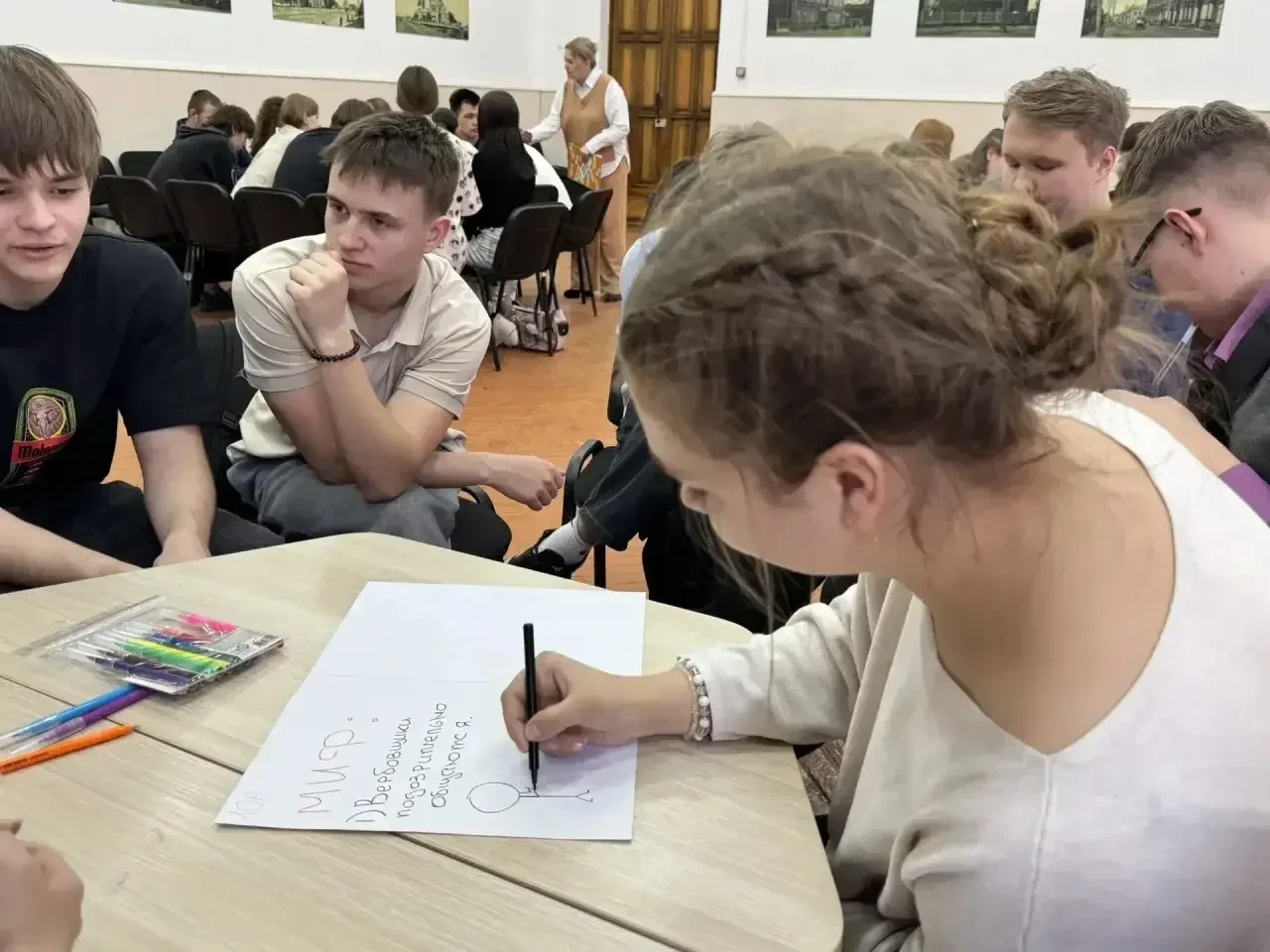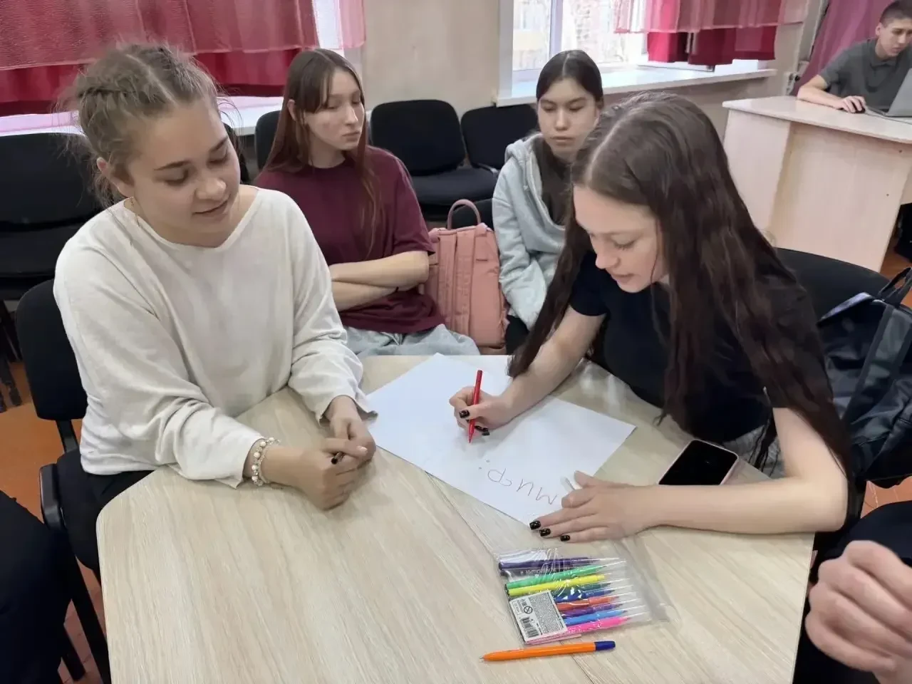 На занятии ученики: