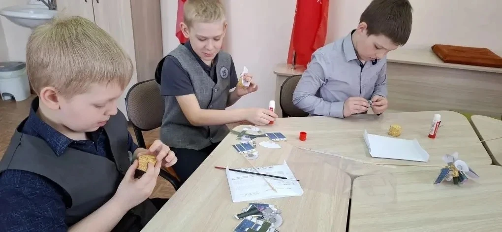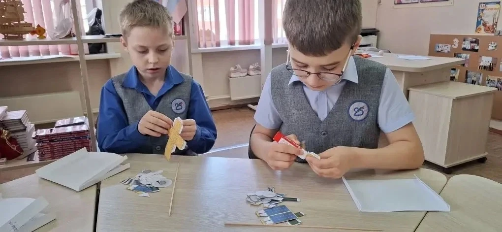 Учащиеся 1 а и 2 в классов в преддверии дня космонавтики в селе Полковниково.
