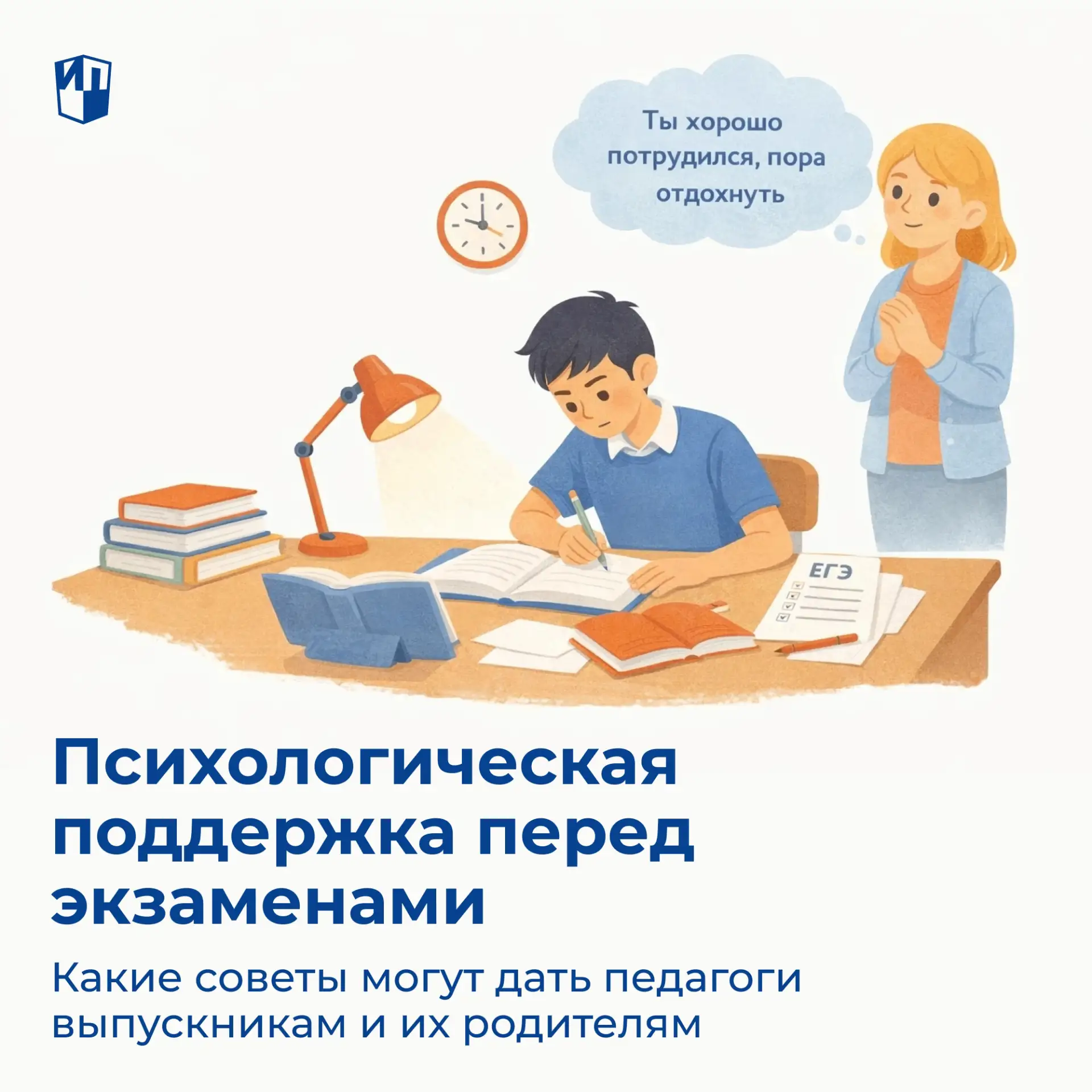 🔹 Освободите ребёнка от лишних дел. Некоторые бытовые задачи временно можно взять на себя — пусть выпускник сосредоточится на подготовке и отдыхе.