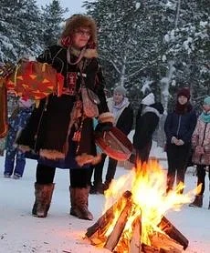 · Значимую роль в праздновании Нового года играют ритуальные танцы и игры: саамы часто исполняют танцы вокруг костра, символизирующего солнце.