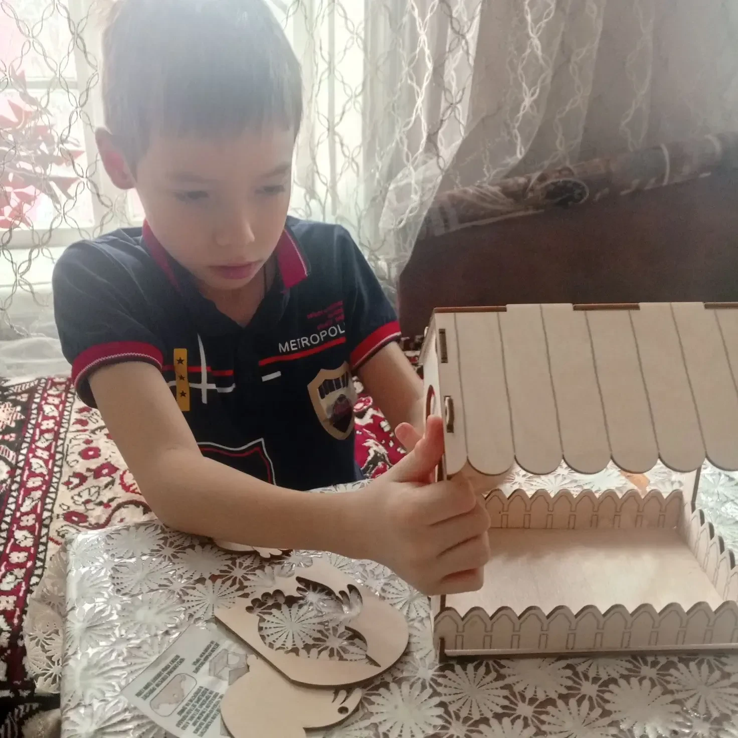 Матвей И., ПавелЧ. приняли участие в акции «Покормите птиц!». Мальчики собрали кормушку из деревянного конструктора и повесили ее вместе с родителями.