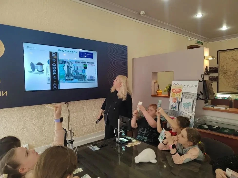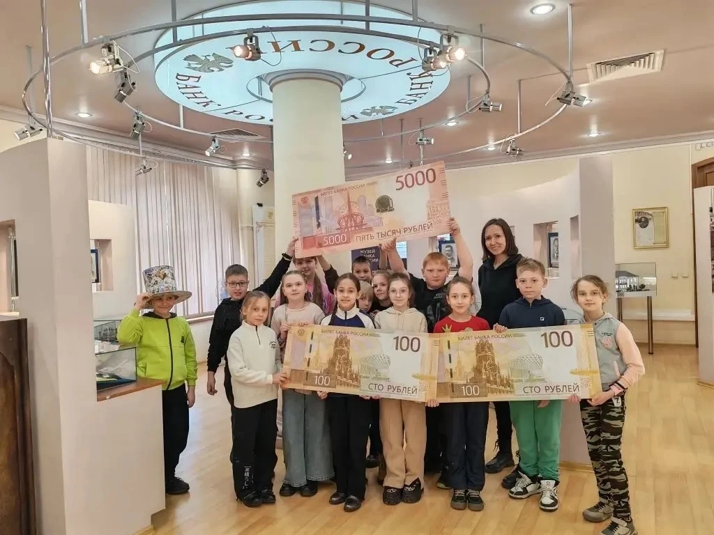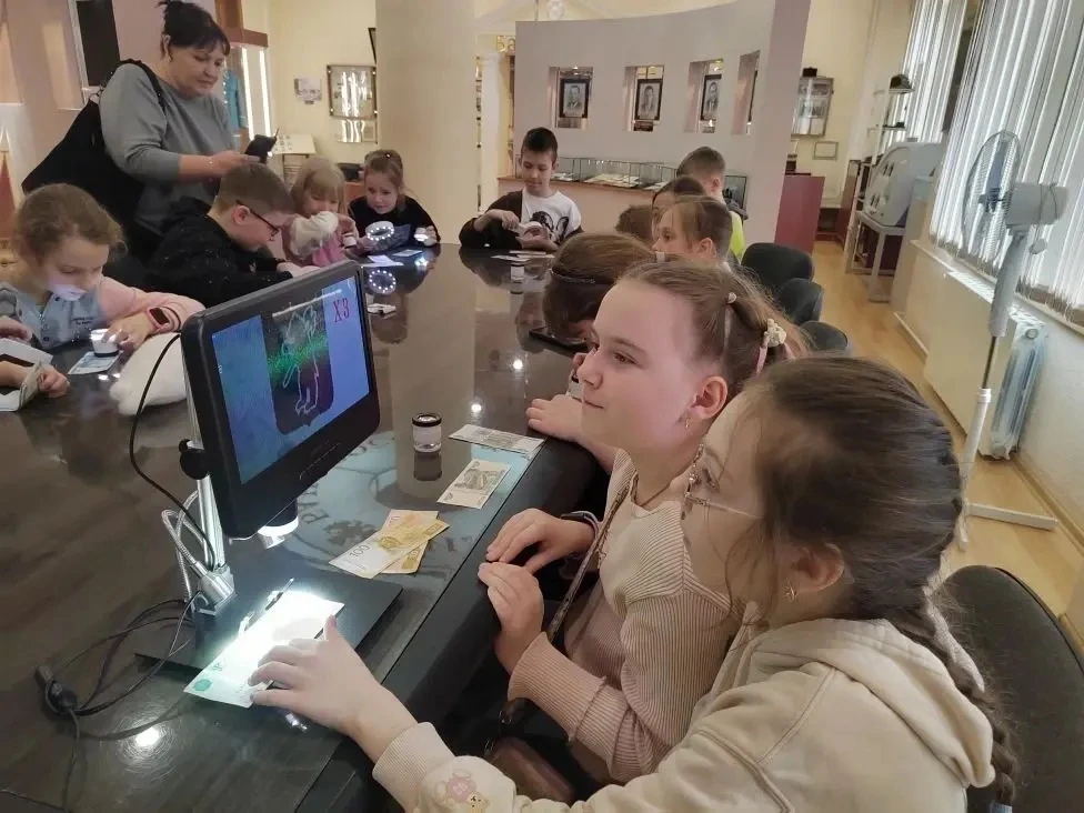 Сначала посетили музей Банка России. Узнали историю денег, познакомились со счетными машинами, самостоятельно рассмотрели банкноты и нашли спецзнаки.